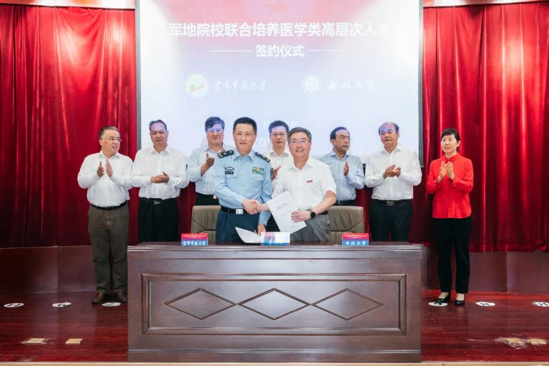 仪式上,空军军医大学校长张思兵分别与西北大学校长郭立宏、延安大学党委书记张金锁、陕西中医药大学校长孙振霖、西安医学院院长杨帆签订联合培养协议。根据协议,空军军医大学将与四所地方高校在医学类研究生的招生录取、培养过程、学生管理等方面开展深度合作,每年计划联合培养硕士研究生200余人。
