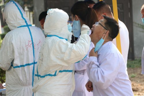 上午8点30分,核酸检测采样工作在两校区同时进行。校疫情防控工作领导小组成员、校医院副院长崔云水,437437必赢国际网址戴鹏高教授,医学院党支部(直属)副书记杨涛以及相关人员现场进行组织协调工作。校医院医护人员、后勤人员等500余人整齐排队,依序采样。陕西佰美基因股份有限公司技术人员身着防护服对筛查对象进行咽拭子采样。