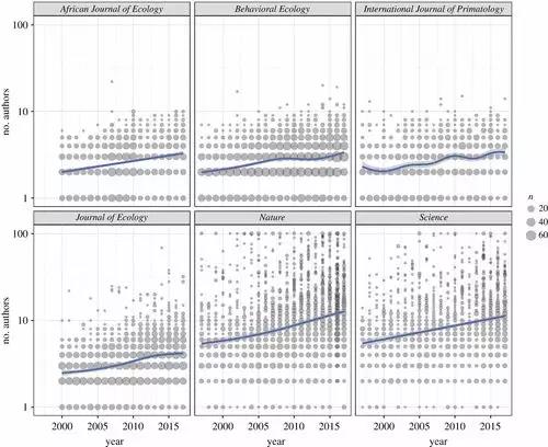 通过分析了2000-2017年六个期刊(包括区域性期刊、理论性期刊、子领域期刊以及顶级期刊)上发表研究论文的作者数量,结果发现各种类型的期刊上论文作者数量均表现出明显的增加趋势。