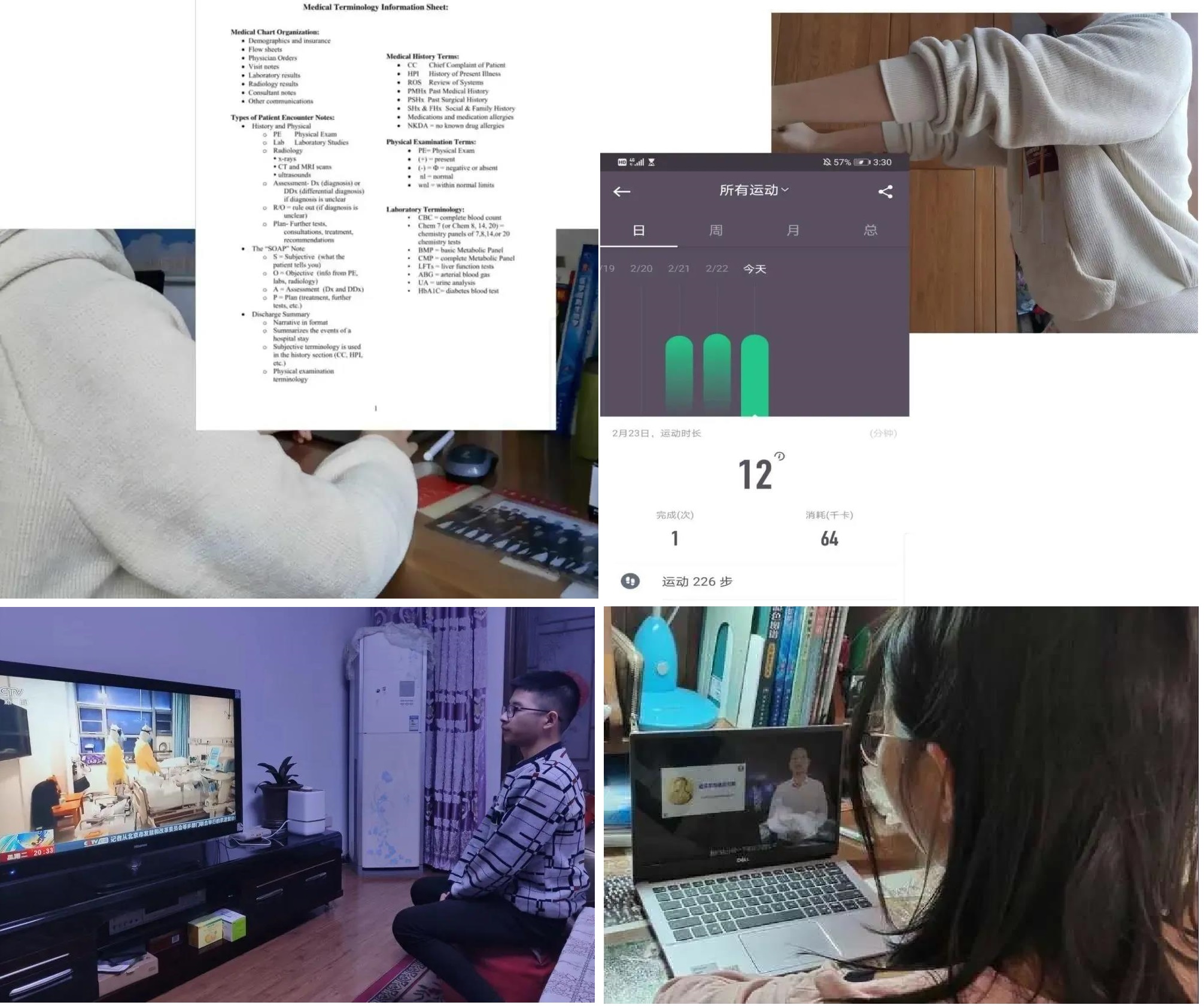 (学习医学术语、运动健身、收看《东方时空》、学习线上公开课)