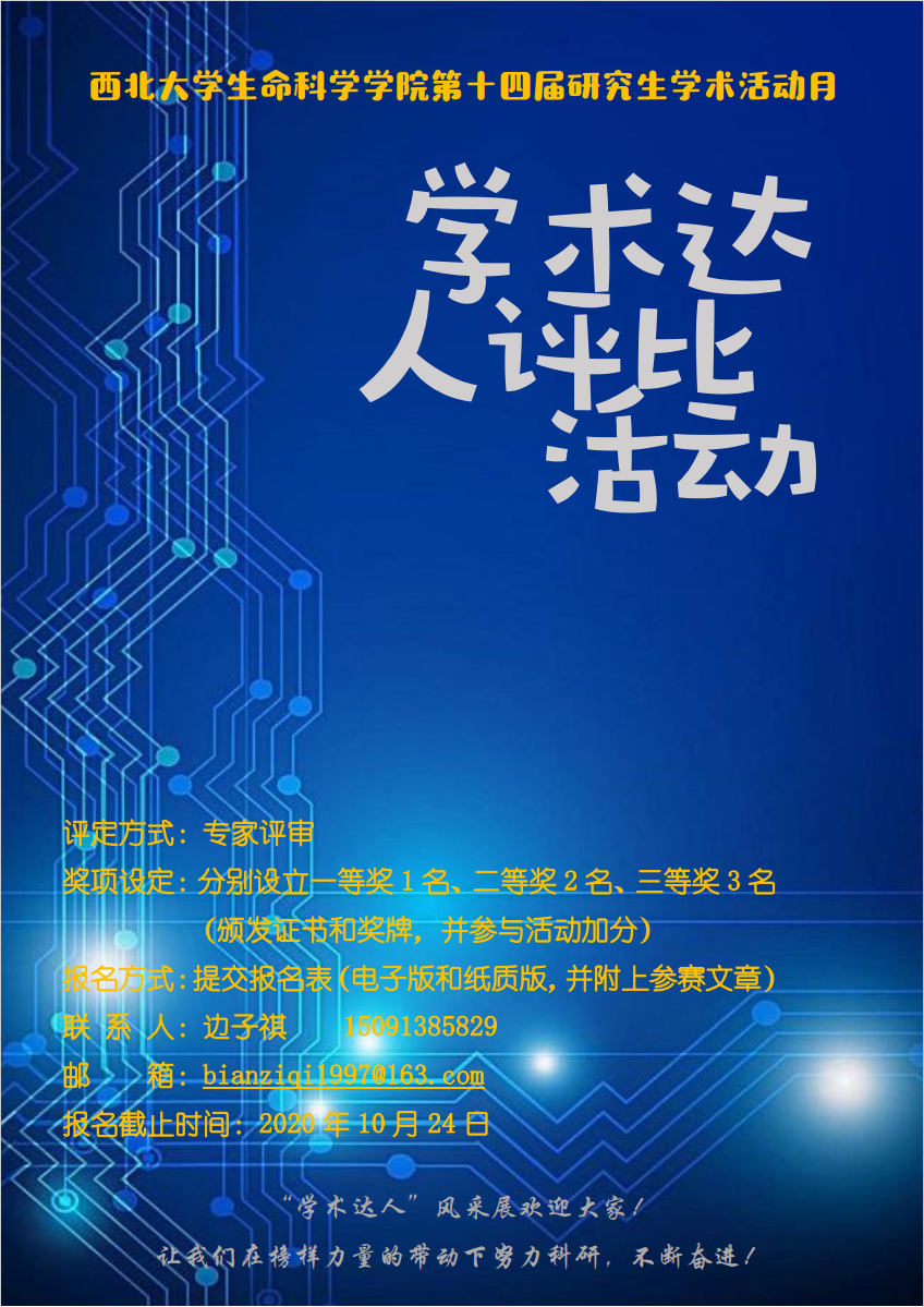 生命科学学院第十四届研究生学术活动月—— “学术达人”评选活动开始啦