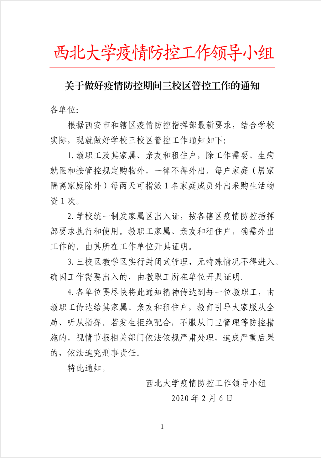 【西大疫情防控工作领导小组通知】关于做好疫情防控期间三校区管控工作的通知