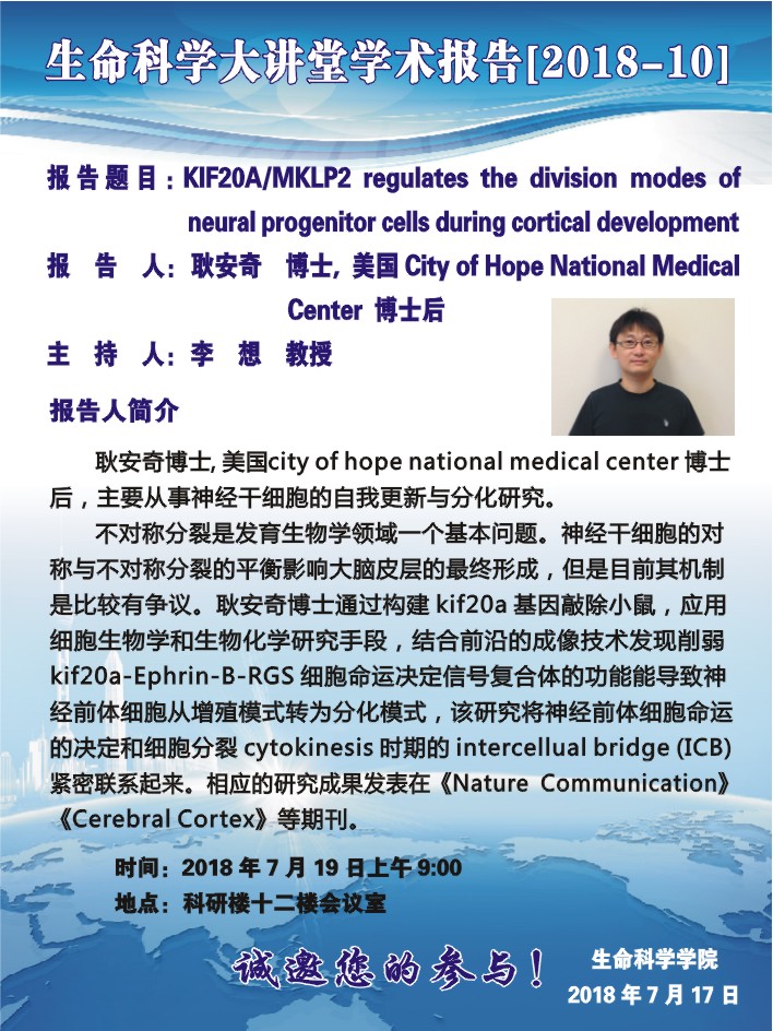 生命科学大讲堂学术报告[2018-10]