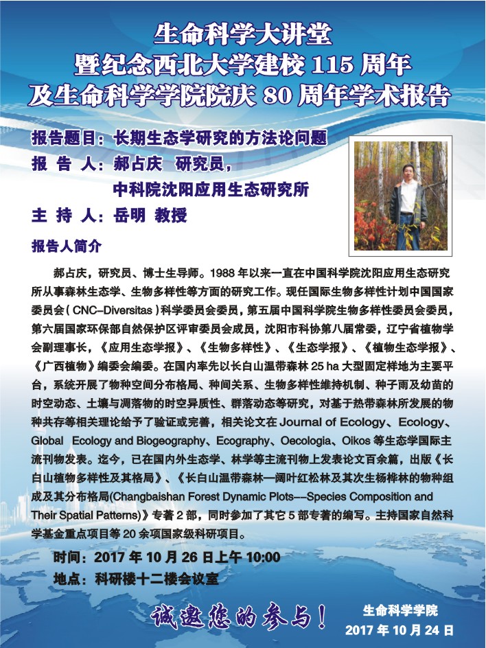 生命科学大讲堂-暨纪念西北大学建校115周年及生命科学学院院庆80周年学术报告【1】