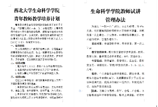学院先后出台了《教师职务评审暂行办法》《青年教师教学能力培养计划》《教师试讲管理办法》和《学术团队制度》,将基层教学组织活动纳入教育教学绩效考核,进一步突出教学业绩在职称评聘、岗位晋级考核中的比重,巩固教学的核心基础地位,引导教师回归教书育人本位。