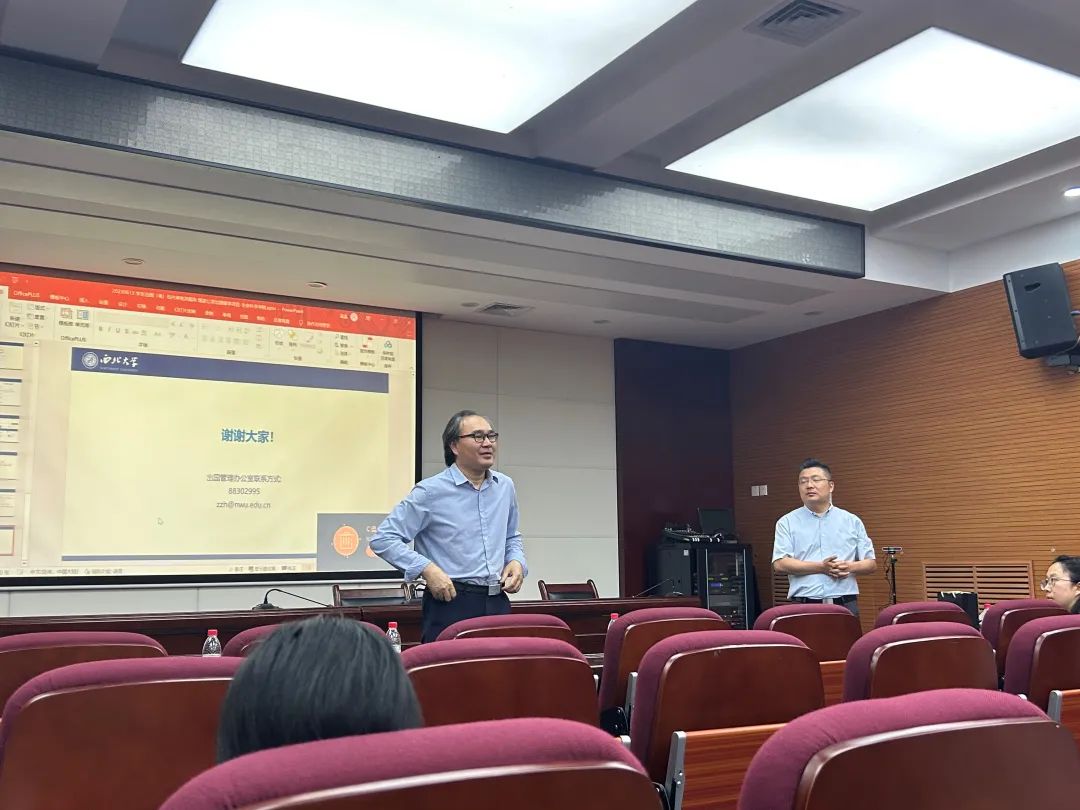 张兆慧老师以“西北大学学生出国(境)校内审批流程与国家公派出国留学项目”为主题,详细说明了国家留学基金管理委员会(CSC)的基本情况,介绍了近五年生命科学学院学生CSC录取名单,分享了出国(境)语言要求、国家公派出国留学的各类项目、CSC国外合作渠道的检索方式、CSC在线申请的审批流程等,鼓励同学们不打无准备之仗,多渠道了解相关信息,积极做好未来规划。