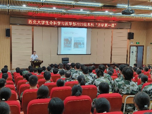 9月4日下午,张勇民院士为学部2023级本科新生做了题为《跟上时代步伐,实现人生跨越》的“开学第一课”。本次讲座在太白校区图书馆报告厅举办,由生命科学学院院长付爱根主持,党委副书记魏宁、辅导员任洁及学部2023级全体本科新生共同参加。