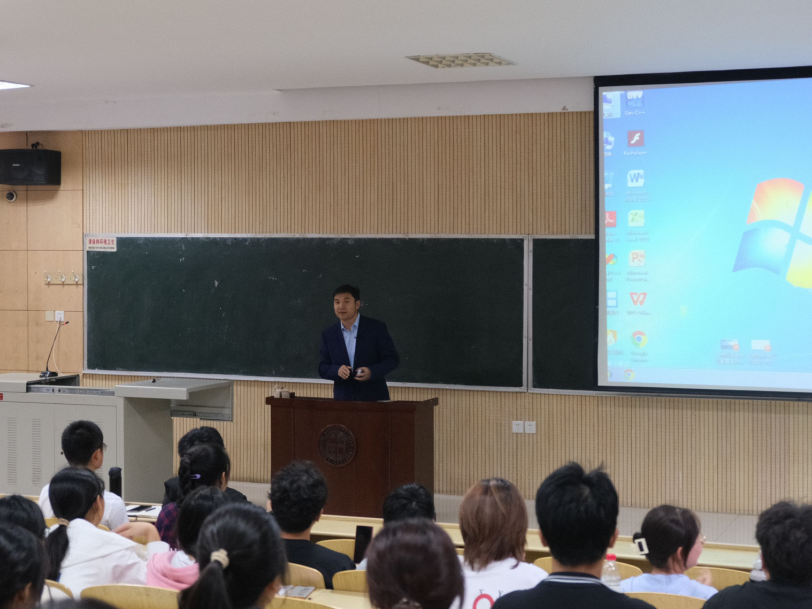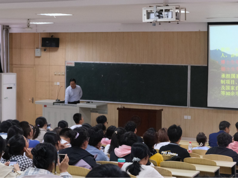 郭松涛教授向新生们介绍了生态学的历史沿革、学科情况、发展需求与就业机会。