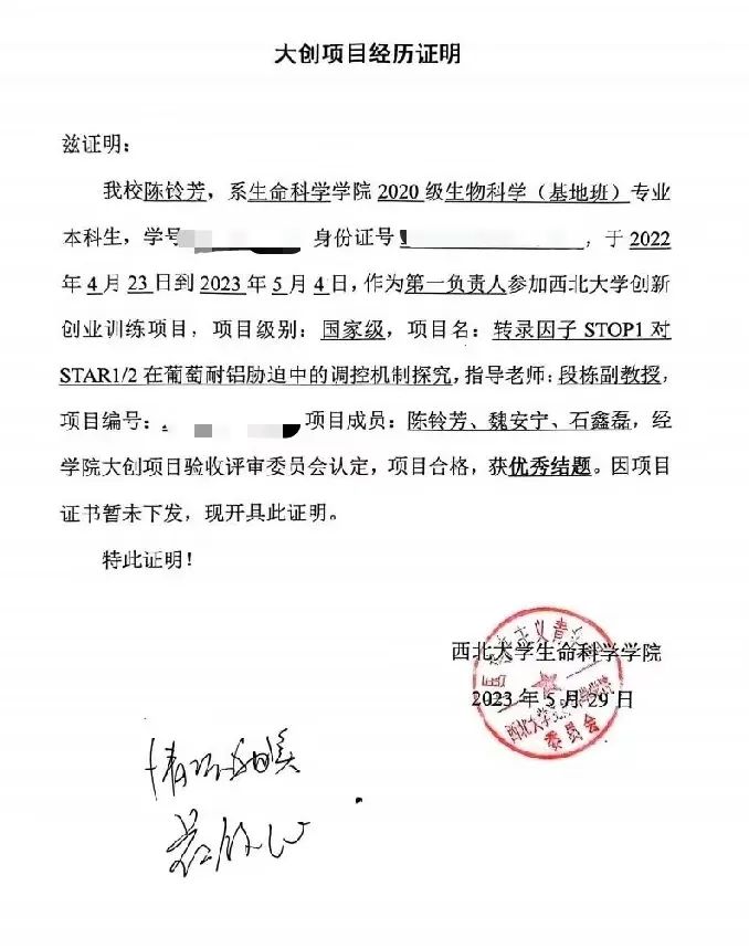 在国创计划进行过程中,实验材料的培育和研究过程漫长而艰辛,项目推进困难重重。“困难大于成果,这是生物实验的常态”,回忆起备赛经历,陈铃芳说。没有合适的实验材料,却意外发现魏安宁家的后山上有团队所研究的野生毛葡萄,让家长帮忙采摘、邮寄……她们始终没有放弃,寻找实验机会、创造实验条件,在大家的不懈努力下,项目获得优秀结题。