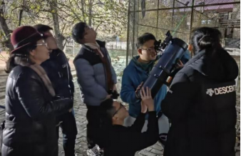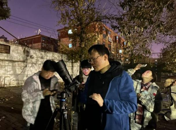 前期准备阶段,谭江丽老师为同学们提供了天文望远镜并成立观星小组,刘培亮老师负责查询星图和相关资料,提出专业见解,最终共同选定了最佳观测时间。联欢会当晚,在刘培亮老师的指导下,观星小组成员选择视野开阔、受灯光影响较小的地点放置好天文望远镜与高倍长焦相机,确定了观测木星的最佳角度。调试设备期间,同学们积极展示才艺,热情分享过往的观星经历,现场气氛活跃。通过老师的指导和同学们的努力,大家成功观测到了木卫和昴星团。