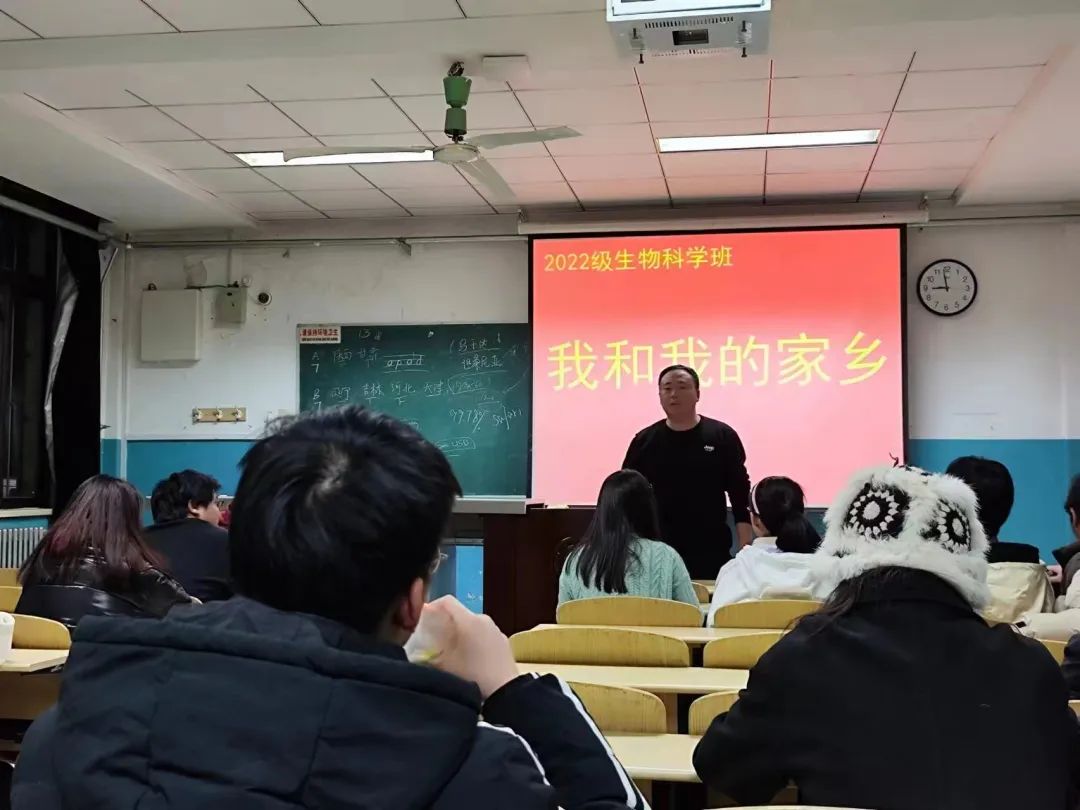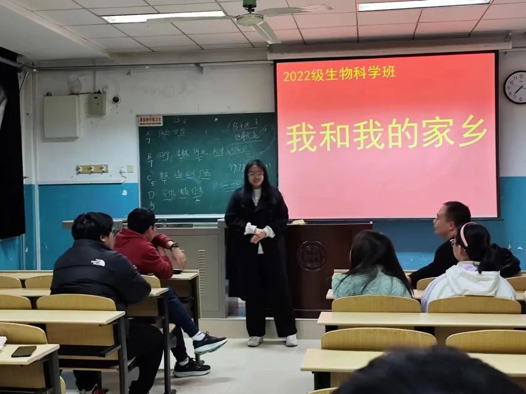 近日,2022级生物科学班举办以“我和我的家乡”为主题的班级活动,班主任杨阳老师、侯荣老师和全体同学参加,同学们通过展示家乡的照片、美食和文化,分享各自有关家乡的记忆,增进了对彼此家乡的了解,加深了对家乡的热爱。