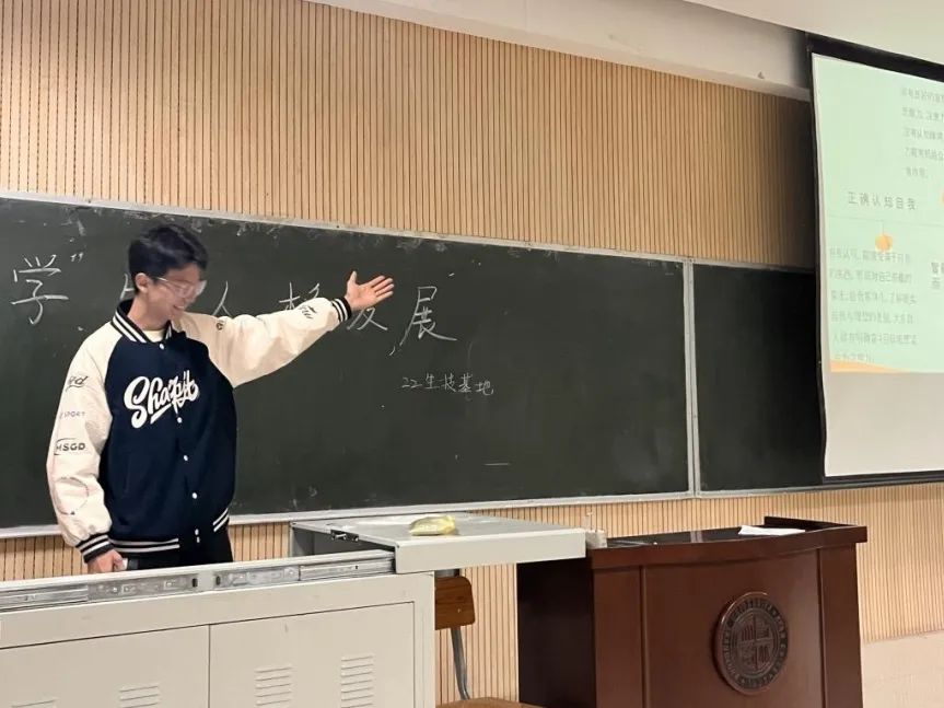 心理委员王垚垚同学首先针对弗洛伊德进行简单介绍,带领同学们共同学习弗洛伊德人格理论,帮助大家充分认识本我、自我、超我。随后,师生一同观看了《埃里克森人格发展八个阶段》纪录片,并通过一个心理互动游戏,让同学们在轻松愉快的氛围中进一步了解了各自的心理特点。最后,大家分别进行了MBTI人格测试并积极分享、讨论。付爱根老师强调了人格特征在学习、生活和人际交往中的重要作用,针对同学们在学习、生活中遇到的心理困扰,给予了专业的建议和指导。通过本次活动,不仅让同学们接触到心理学领域的专业知识,还帮助大家对自己的人格有了更清晰的认识,引导大家充分认识自我,学会调整心态,更好地应对学习和生活中的压力。