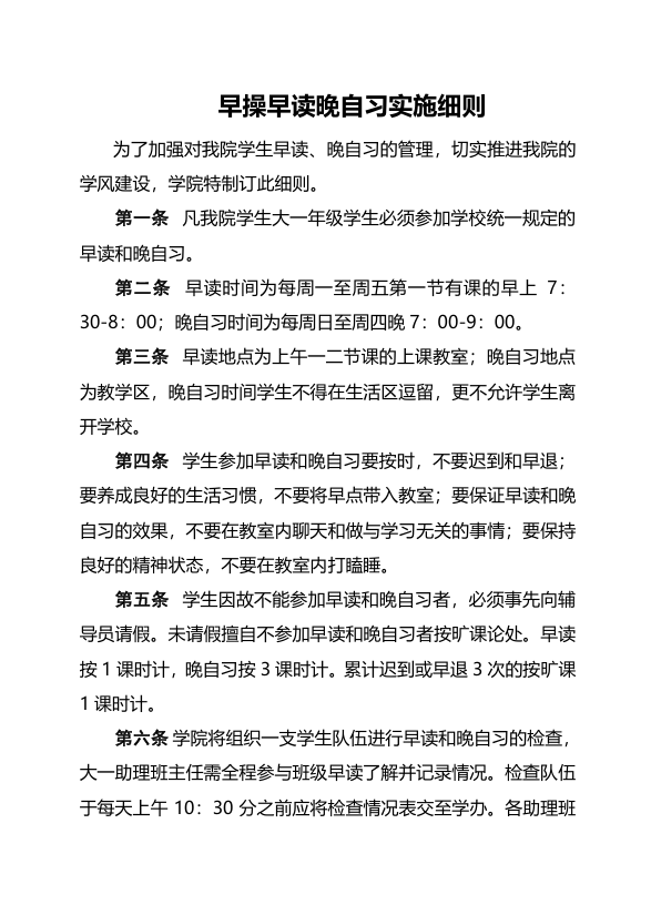 (早操早读晚自习实施细则)