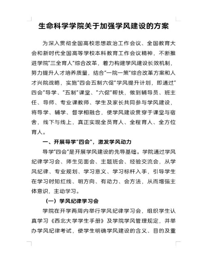 (生命科学学院关于加强学风建设的方案)