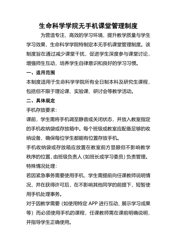 (生命科学学院无手机课堂管理制度)