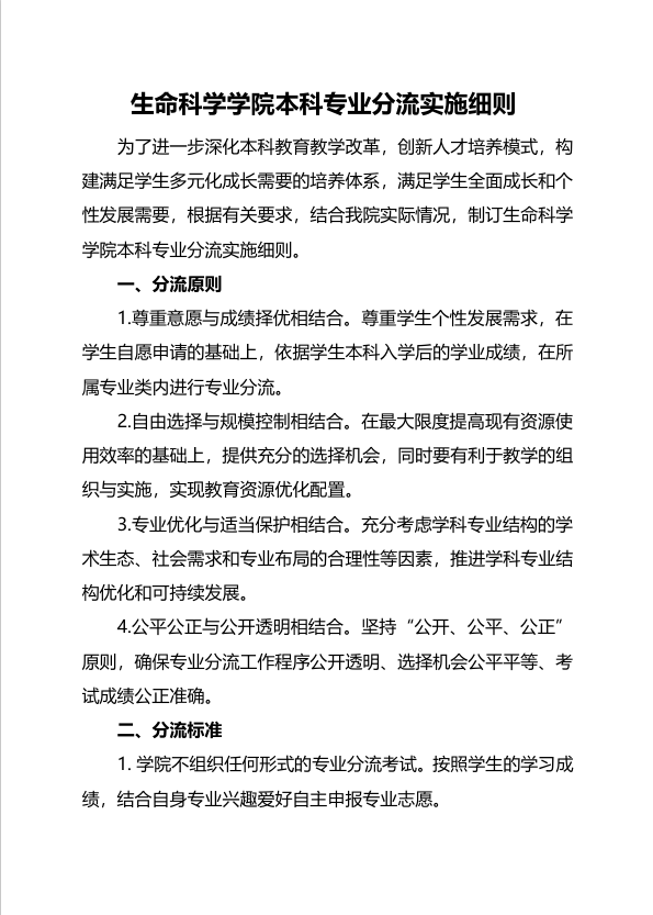 (生命科学学院本科专业分流实施细则)