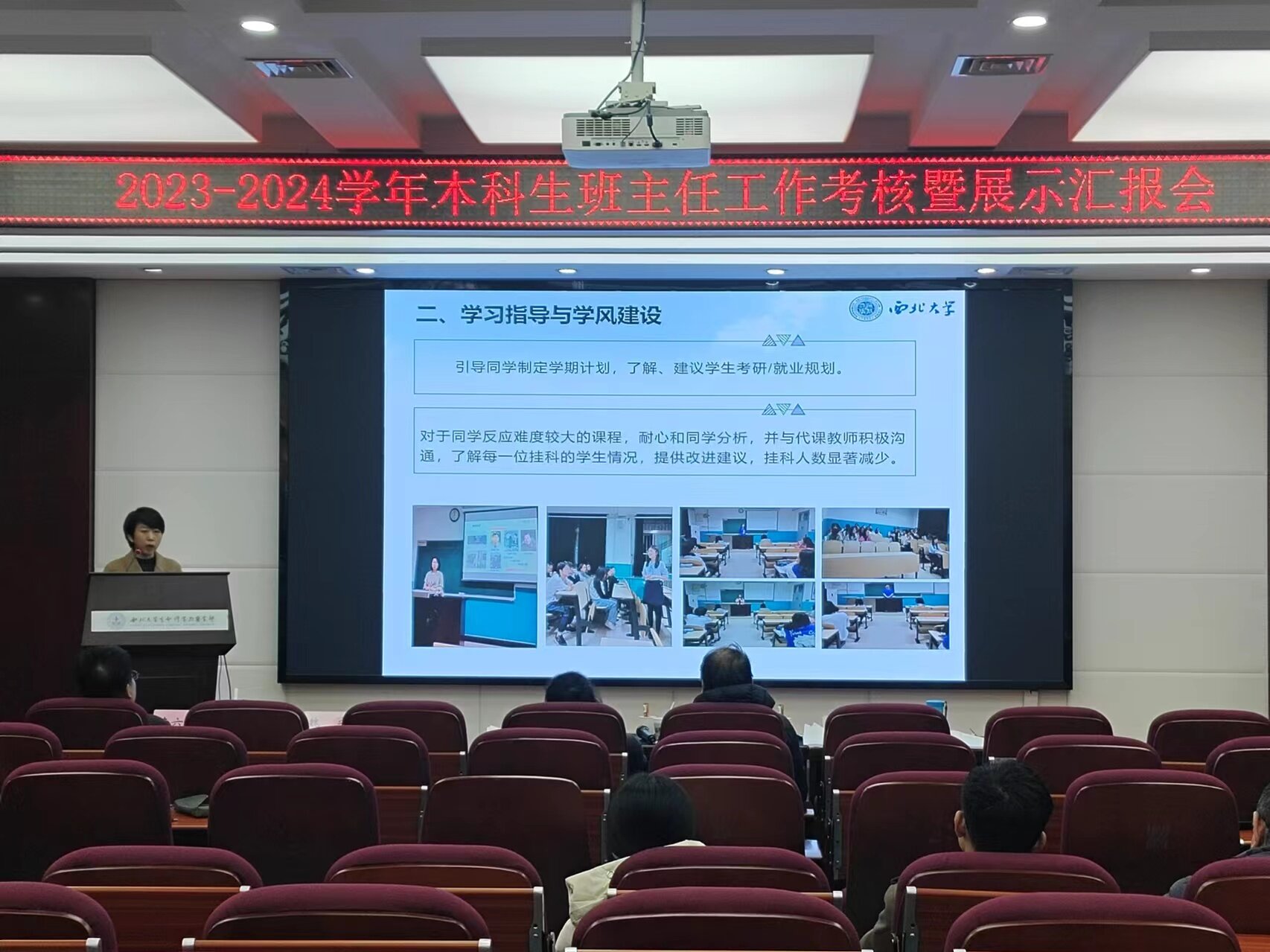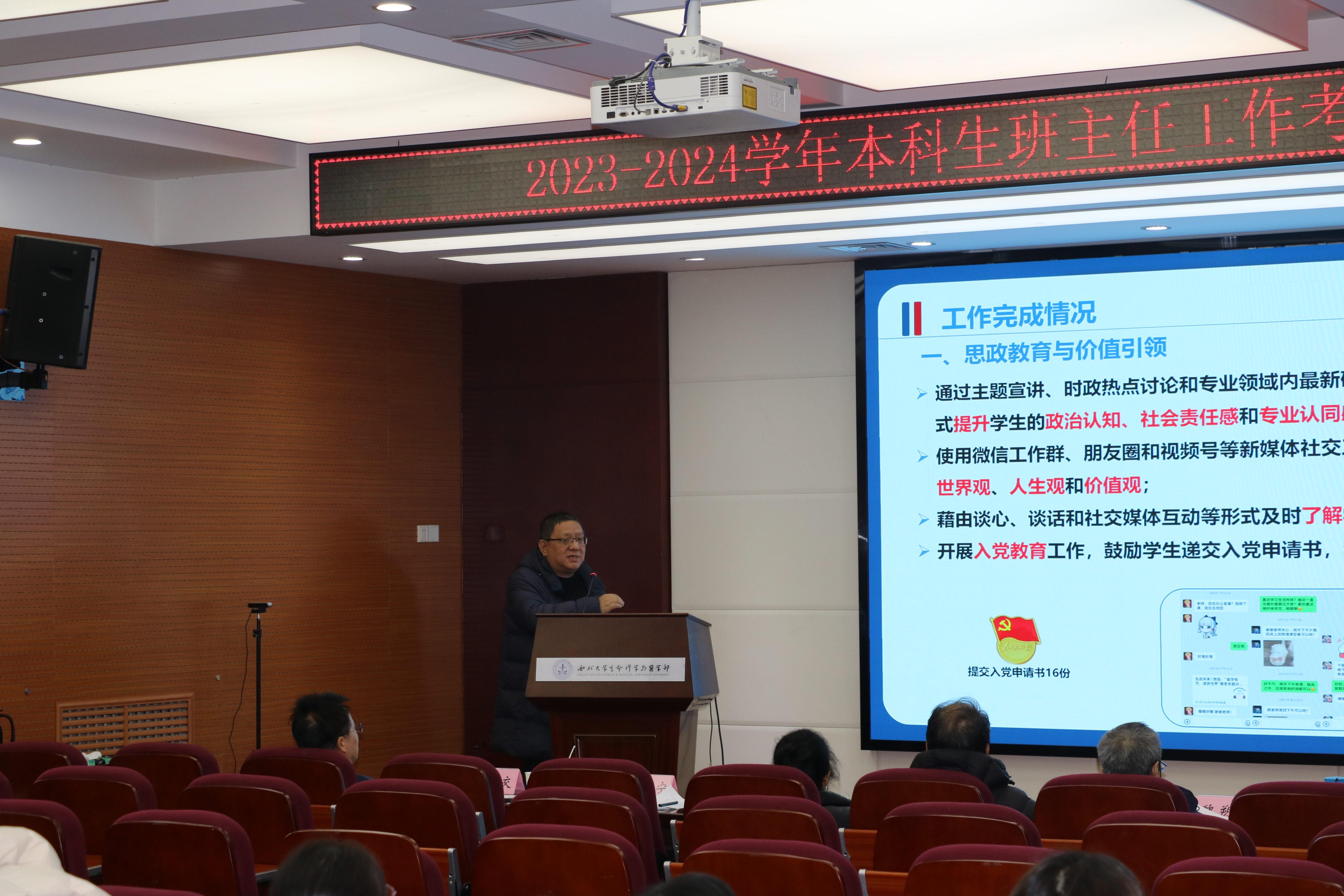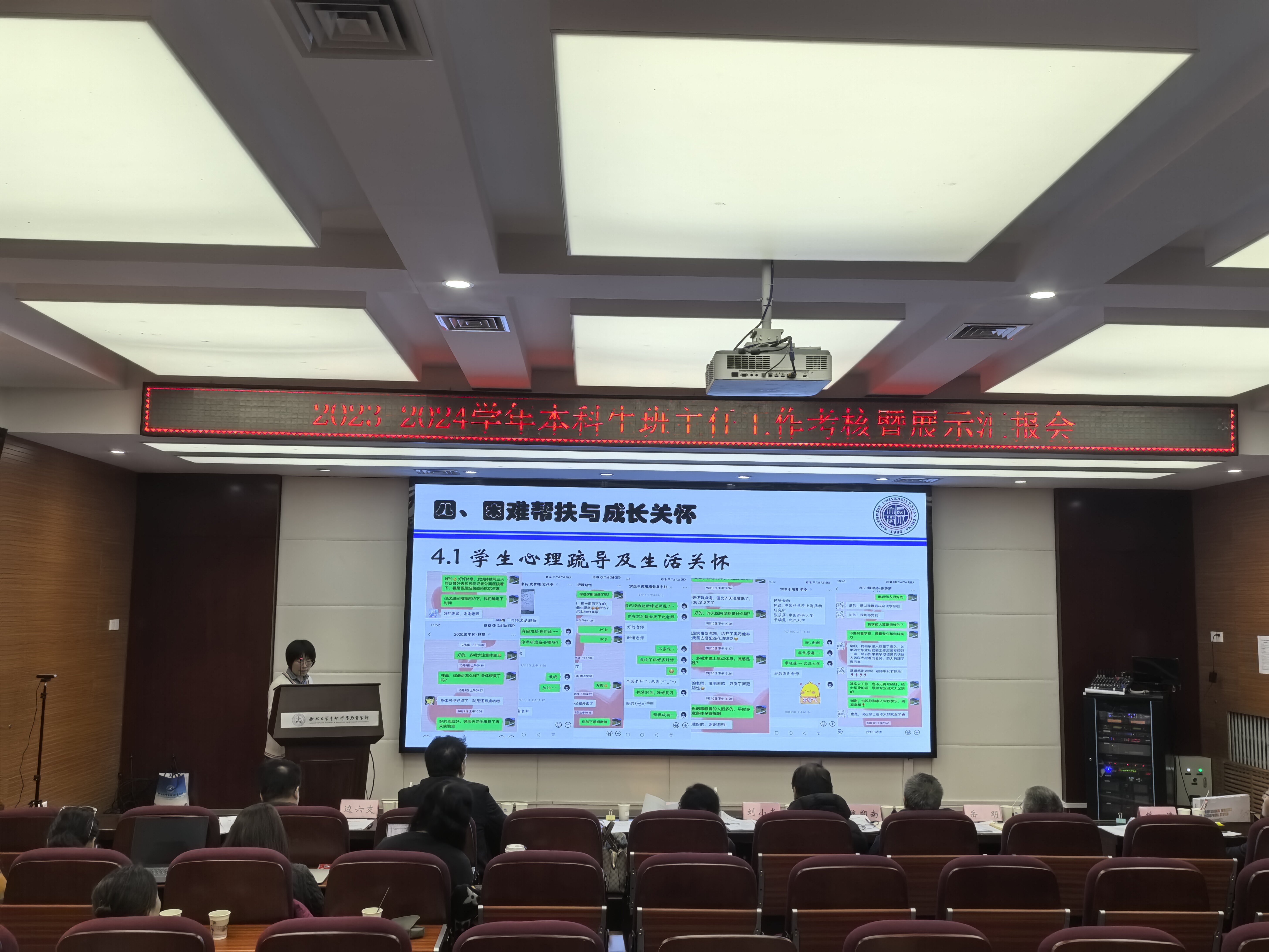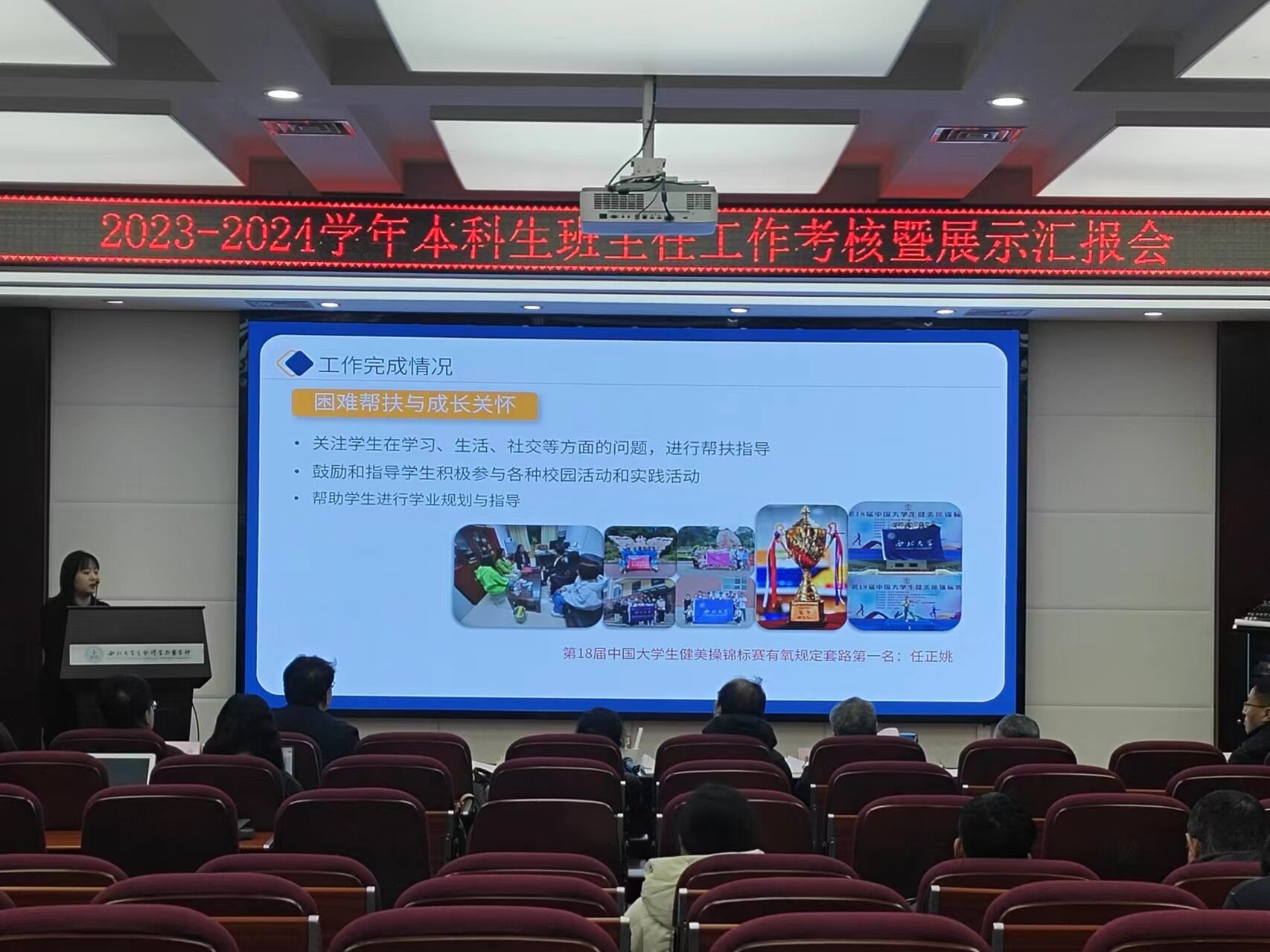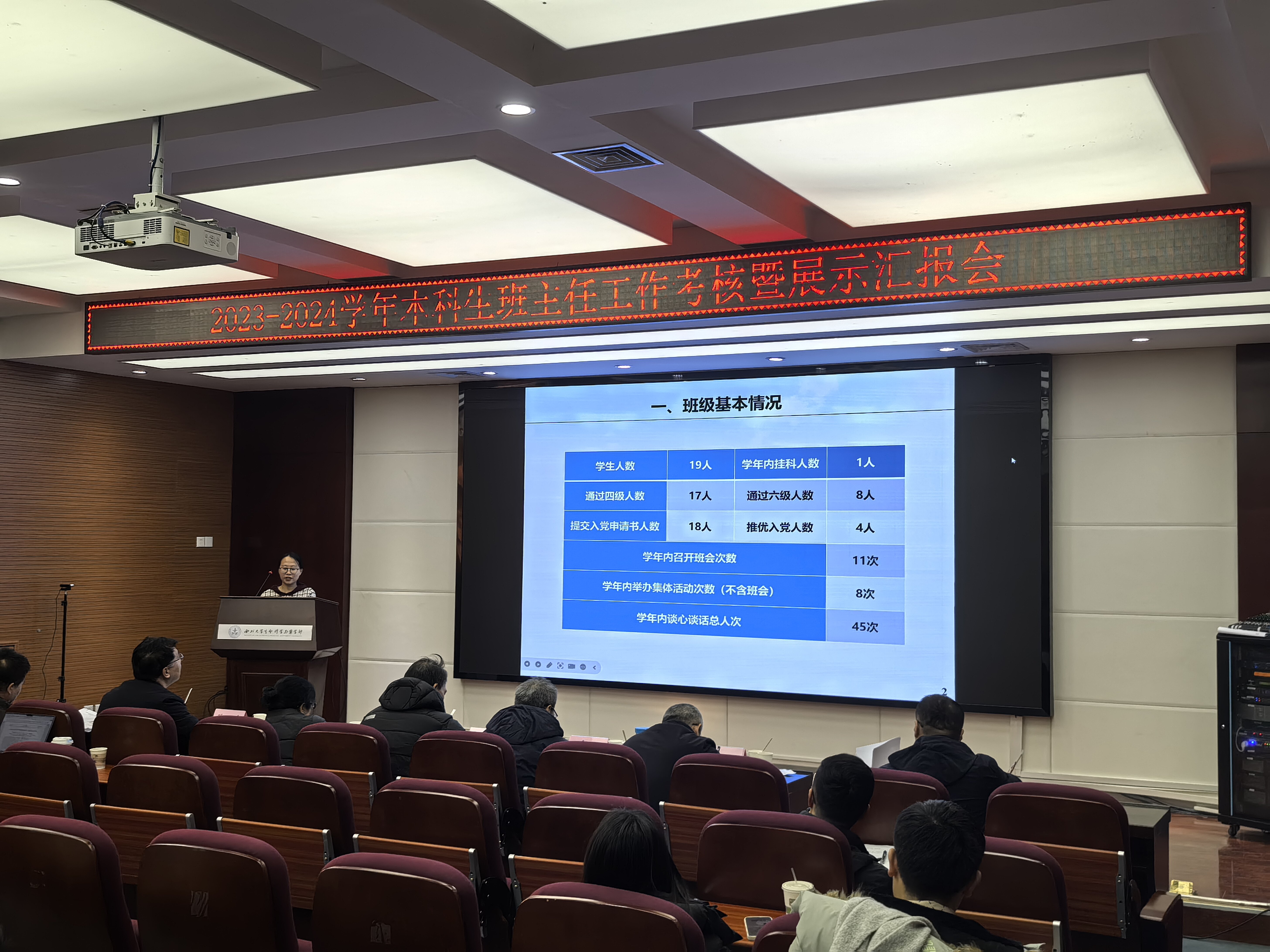 在过去一学年的班主任工作中,各班主任老师展现出高度的责任感与使命感,保持了充分的工作热情,扎实投入班级工作,心系学生成长成才,无论是在日常管理中的细致入微,还是在班级文化建设中的创新实践、在学生困难辅导中的耐心倾听,都是学院本科生人才培养中不可或缺的宝贵财富。此次展示汇报会的圆满举办,不仅为各班主任提供了一个展示自我、交流经验的机会,也进一步推动了我院班主任工作科学化、规范化和制度化运行。学院始终重视本科生班主任队伍建设工作,今后将继续加大对班主任工作的支持力度,鼓励班主任在实践中不断探索创新,真正发挥好专业教师在本科人才培养工作中的重要作用,以更加专业和高效的工作方式,为学生全面发展和本科生教育培养贡献更多的智慧和力量。