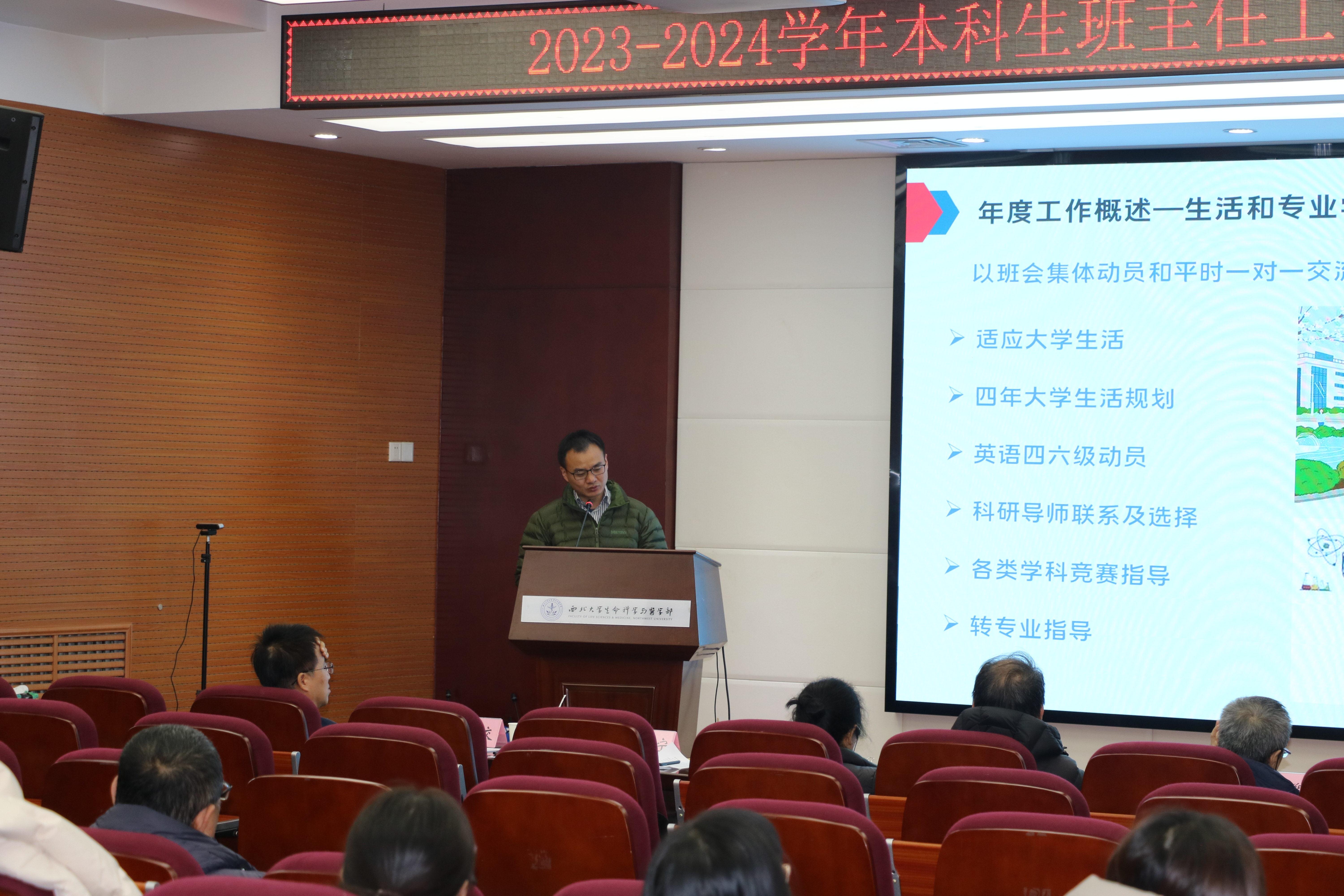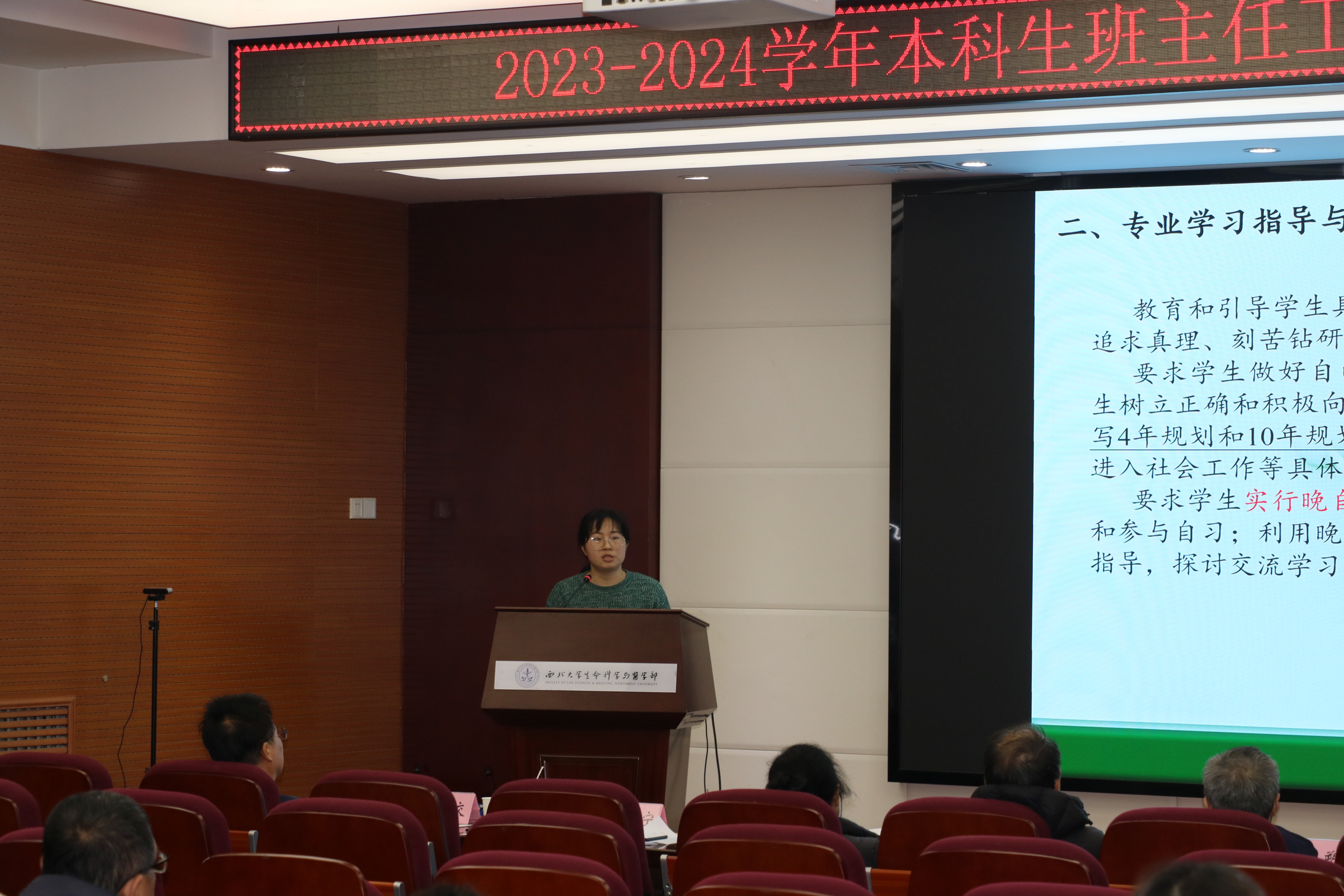 魏宁副书记首先简要回顾了2022-2023学年的学生工作与本科生班主任工作,介绍了一学年以来学生工作方面取得的好成绩、好成果,高度肯定了过去一学年的班主任工作,对各班主任的用心付出与辛苦工作表示衷心感谢。同时指出,此次汇报会既是对班主任工作一年的总结,也是为班主任提供一个互相学习、借鉴经验的良好平台,通过此次展示汇报,班主任们可以相互交流做法、拓宽工作思路,共同提升班主任工作的专业性、针对性。