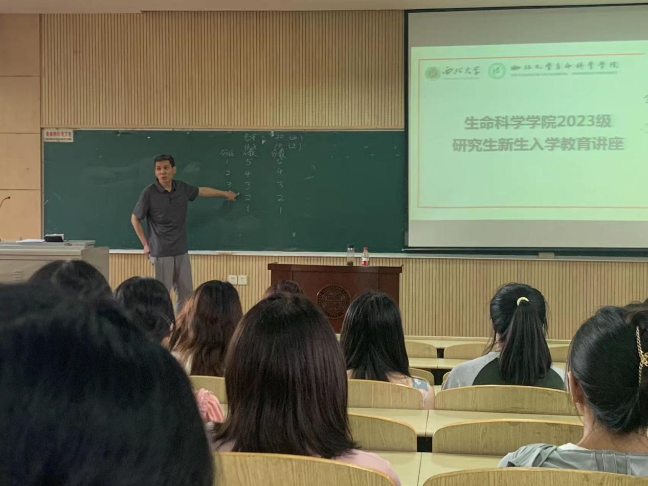 在2023级硕士新生入学教育讲座中,马老师针对所有学生关心的毕业要求做了详细而全面的阐述。他讲到,西北大学的校训就是学院对于学术追求的良好写照,使学术科研的重要性深深扎进每位学生的心里。马老师话语幽默诙谐,姿态亲切轻松,神情公正严谨,整个讲座过程气氛和谐舒畅。之后,马老师着眼于学生心理健康,提醒学生要学会克服困难,不要转嫁矛盾,及时寻求帮助,排忧解难。最后,马老师与学生沟通,答疑所困所惑,道明原委,理清思绪。辅导员任洁强调了在校的管理制度及要求,解答了同学们入学之初的一些问题,希望每一位新生能在未来的学习生活中脚踏实地,奋力前行。