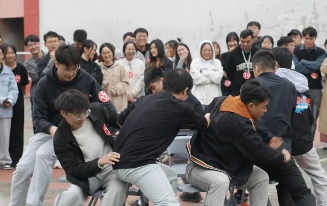 运动会由“一锤定音,当仁不让”赛段拉开序幕,每支参赛队伍选出两名队员,分男、女生为两组进行比赛。首先进行的是数字抱团环节,选手根据裁判所念的数字进行抱团,哨声停止为结束时间,当淘汰人数达到5人后则进入抢凳子环节。参赛选手争先恐后,围观的群众不断叫好,现场欢声笑语、呼声雷动,将运动会的氛围瞬间引向高潮。