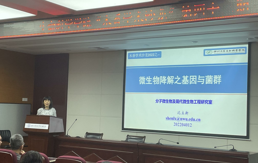 (沈教授进行关于微生物降解基因及菌群的研究报告)