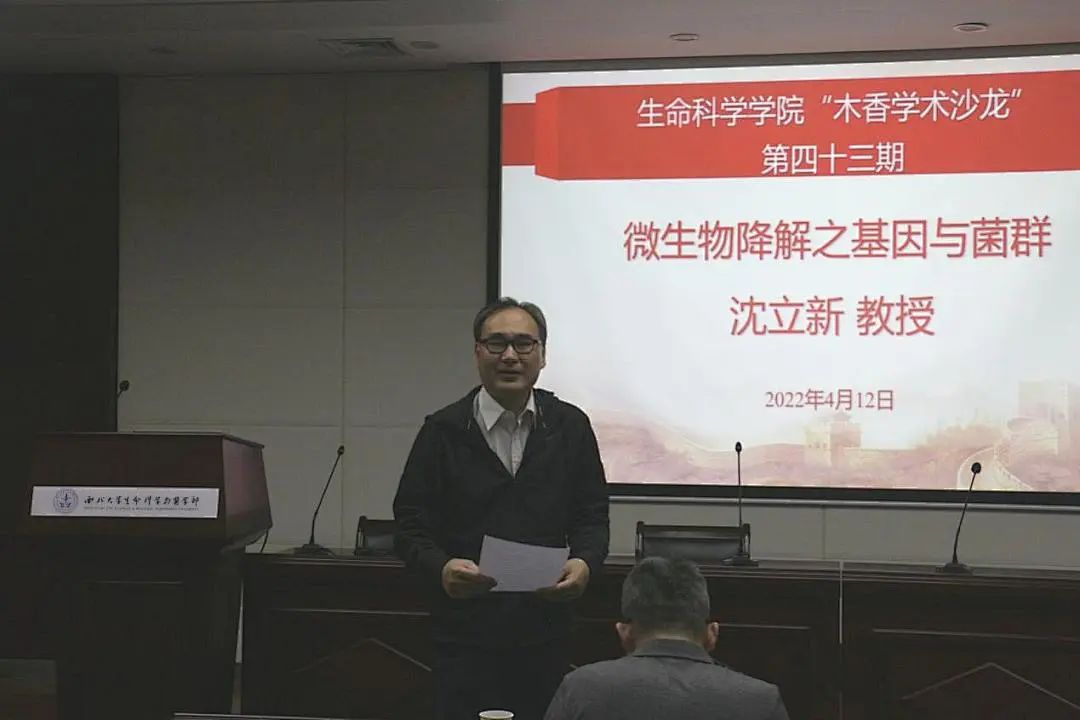 2022年4月12日下午,我院第43期“木香学术沙龙”在博望报告厅顺利开讲,邀请沈立新教授作题为“微生物降解之基因与菌群”的学术报告,40余名师生参加并按疫情防控规定隔位就坐。报告由付爱根教授主持。