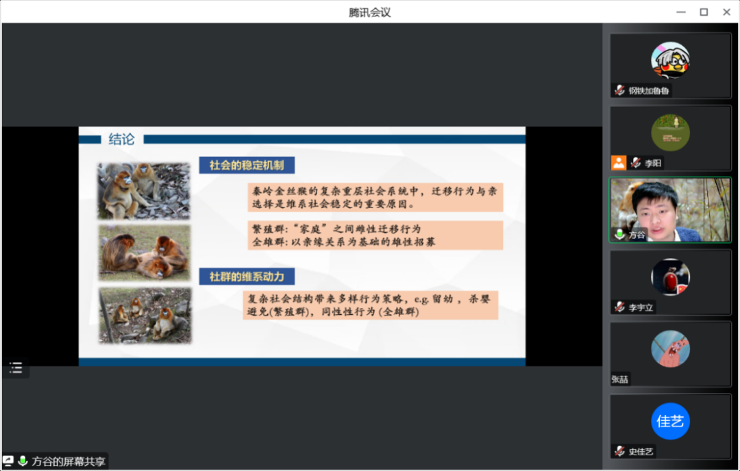 方谷老师作“川金丝猴社会稳定机制与社群雄系动力”学术分享