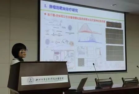 在张英老师的报告中,介绍了她在肿瘤靶向诊疗中的研究进展。致死率之首的脑神经胶质瘤发病率逐年递增,但是由于其病灶特殊,头骨、血脑屏障、神经系统筹使其诊疗存在早期检测率低、化疗药物递送效率差、手术治疗风险高等挑战。由于异常糖基化修饰与肿瘤发生发展密切相关,张老师基于非天然代谢结合生物正交反应,实现了肿瘤相关异常唾液酸化修饰的荧光成像,为活体水平肿瘤细胞的可视化成像检测提供了有效方法;基于糖-受体蛋白的相互作用,通过葡萄糖化的脂质体同时携带化疗药和线粒体失活多肽高效穿过血脑屏障并靶向递送药物至肿瘤细胞内部,叠加线粒体失活多肽的协同作用,提高了肿瘤细胞对化疗药的敏感性,有望解决脑肿瘤治疗过程中的耐药性和副作用大等问题。此外,张老师还分享了她在介导病毒粘附感染宿主靶标糖链筛选与制备方面的研究进展。