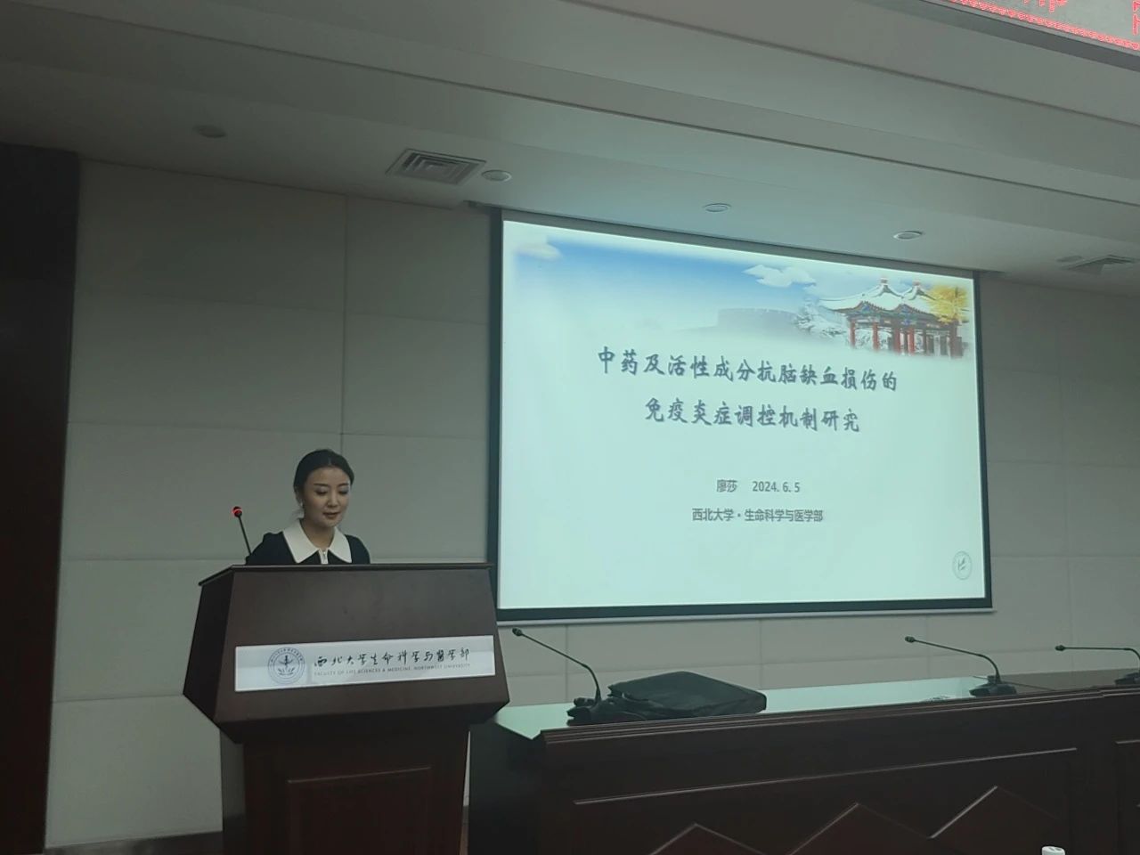 我院廖莎老师作“中药及活性成分抗脑缺血损伤的免疫炎症调控机制研究”学术分享