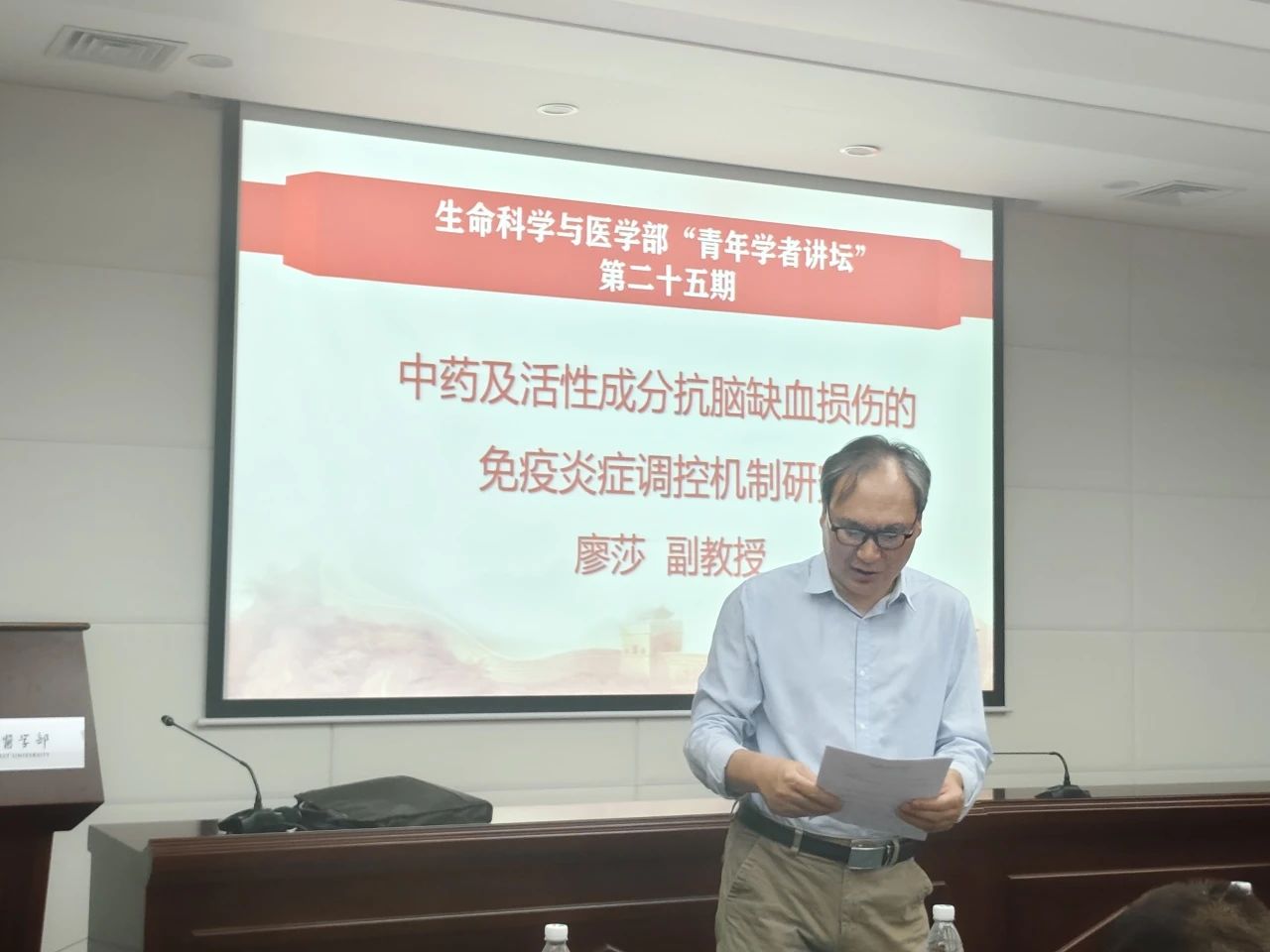 2024年6月5日中午,生命科学与医学部第二十五期“青年学者讲坛”于博望报告厅举行。本期讲坛邀请廖莎老师作为主讲嘉宾进行学术分享,四十多位师生参加。报告由付爱根教授主持。