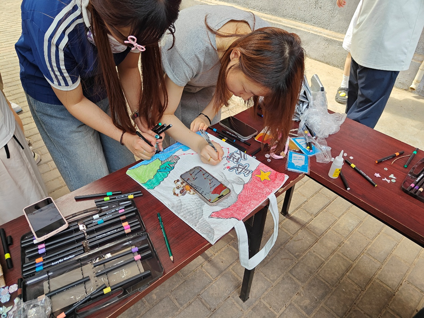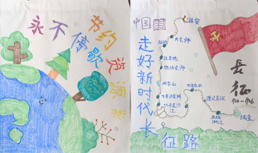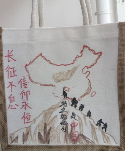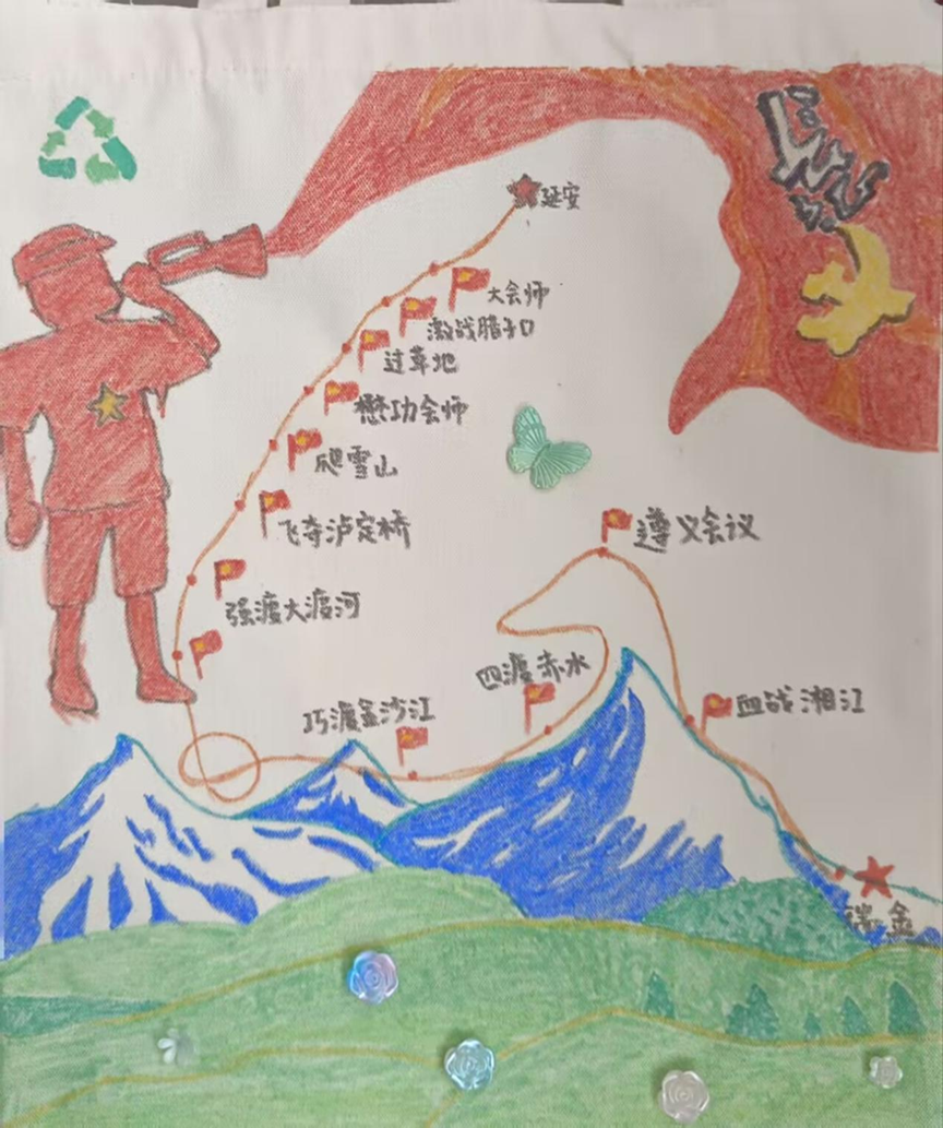 本次活动精心设计“环保工艺深度体验”“ 创意制作”“成果展示与评审”三大核心环节,吸引太白校区各专业学生积极参与。在创意制作环节,同学们充分发挥专业所长,利用可循环帆布、废旧麻布等材料,通过天然染料手工印染技术,将长征路线图、雪山草地等红色文化符号巧妙融入环保袋设计。部分作品还特别标注生物降解材料特性说明,将学科专业知识与红色文化传播有机结合。