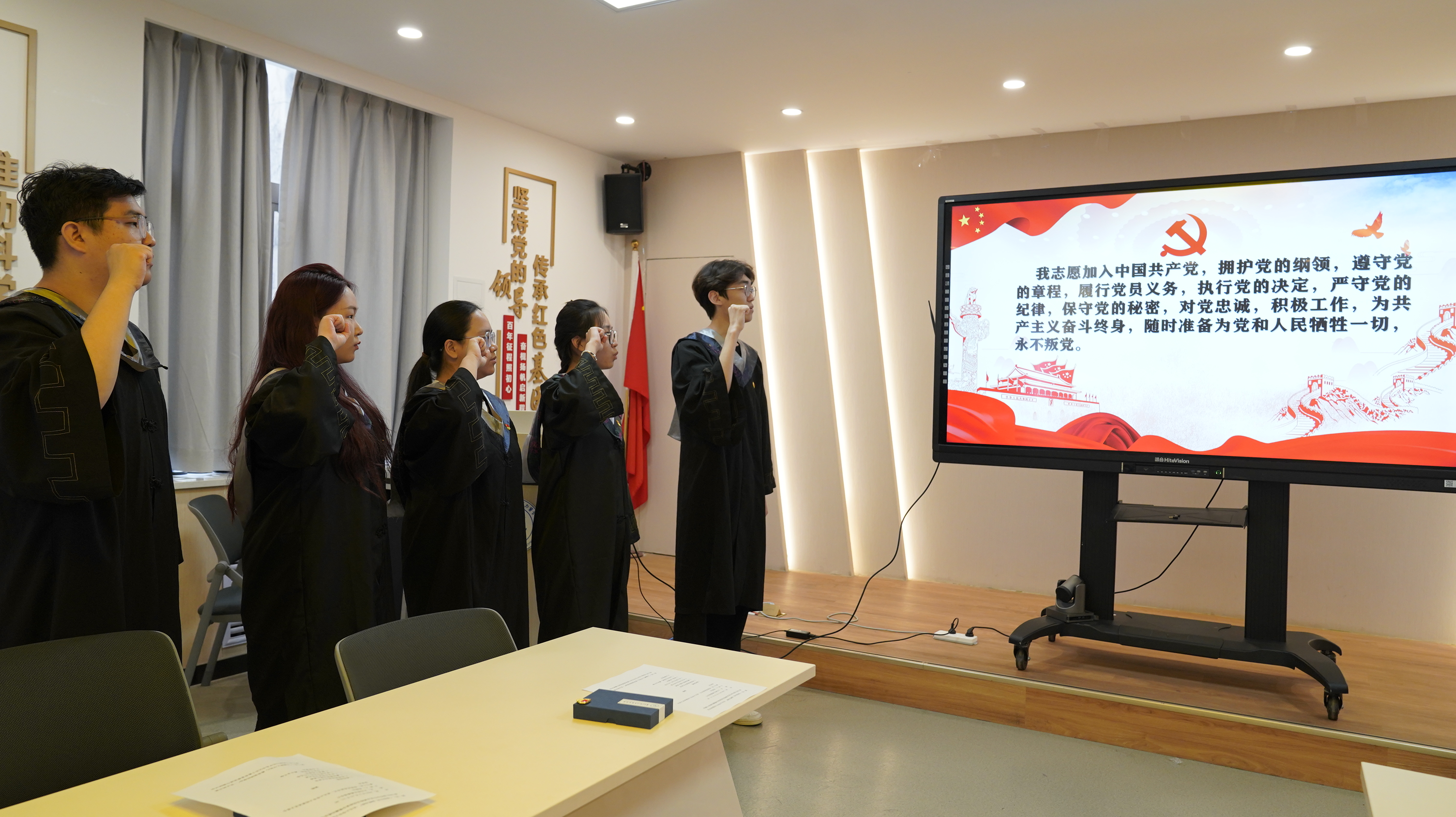 全体毕业生党员面向党旗重温入党誓词,铿锵有力的誓言彰显了不忘初心、牢记使命的坚定信念。活动尾声,党支部为毕业生党员准备了毕业蛋糕和纪念品,并合影留念,为校园党员生活画上温暖句点。
