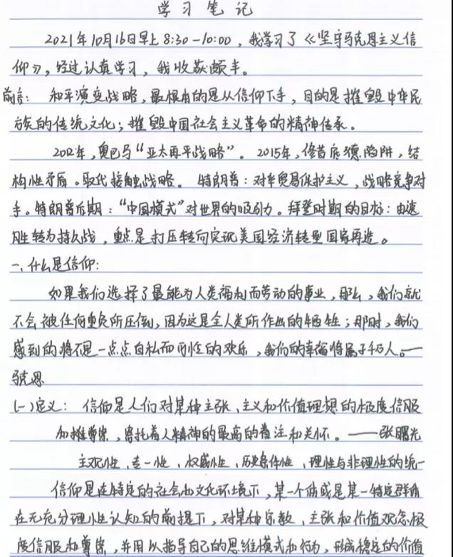 我很荣幸可以在中国共产党成立一百周年之际接受入党积极分子党课培训。课程从习近平新时代中国特色社会主义思想的讲解开始,以党的基本知识为主,结合党史,通过课堂讲授与专题报告等方式进行,进一步加深了我对于中国共产党的认识。老师们的细心讲授,帮助我确立了远大的理想信念和正确的世界观、人生观、价值观。非常感谢党支部给予我的珍贵的学习机会。今后,我将继续学习历史,从先辈们的征途中继承伟大精神品质,赓续红色血脉,承担责任,走好自己的“长征路”!