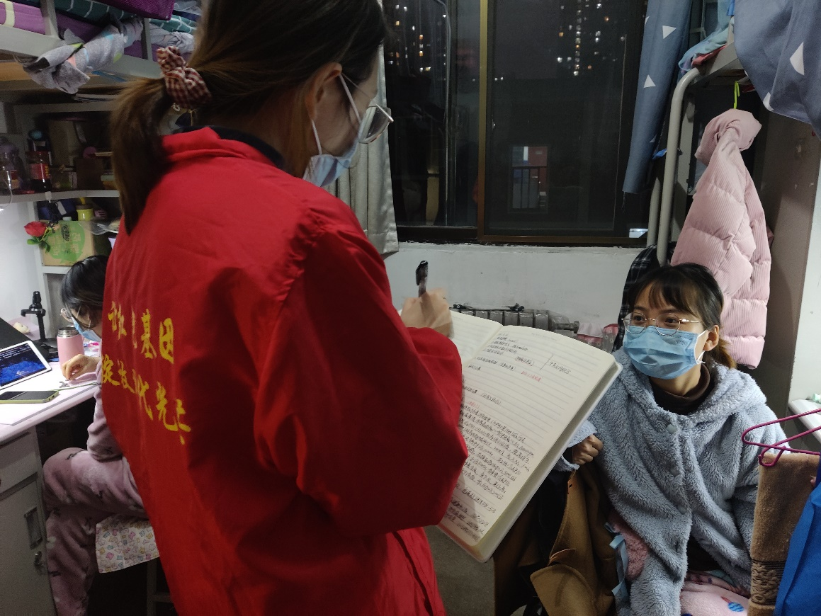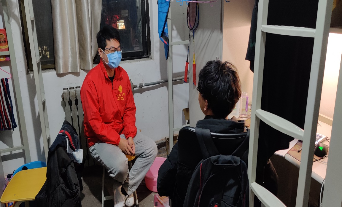 2.人文关怀。通过线上与线下相结合,与学生谈心谈话,准确掌握学生在校、在宿舍学习生活情况, 给予精准帮扶。