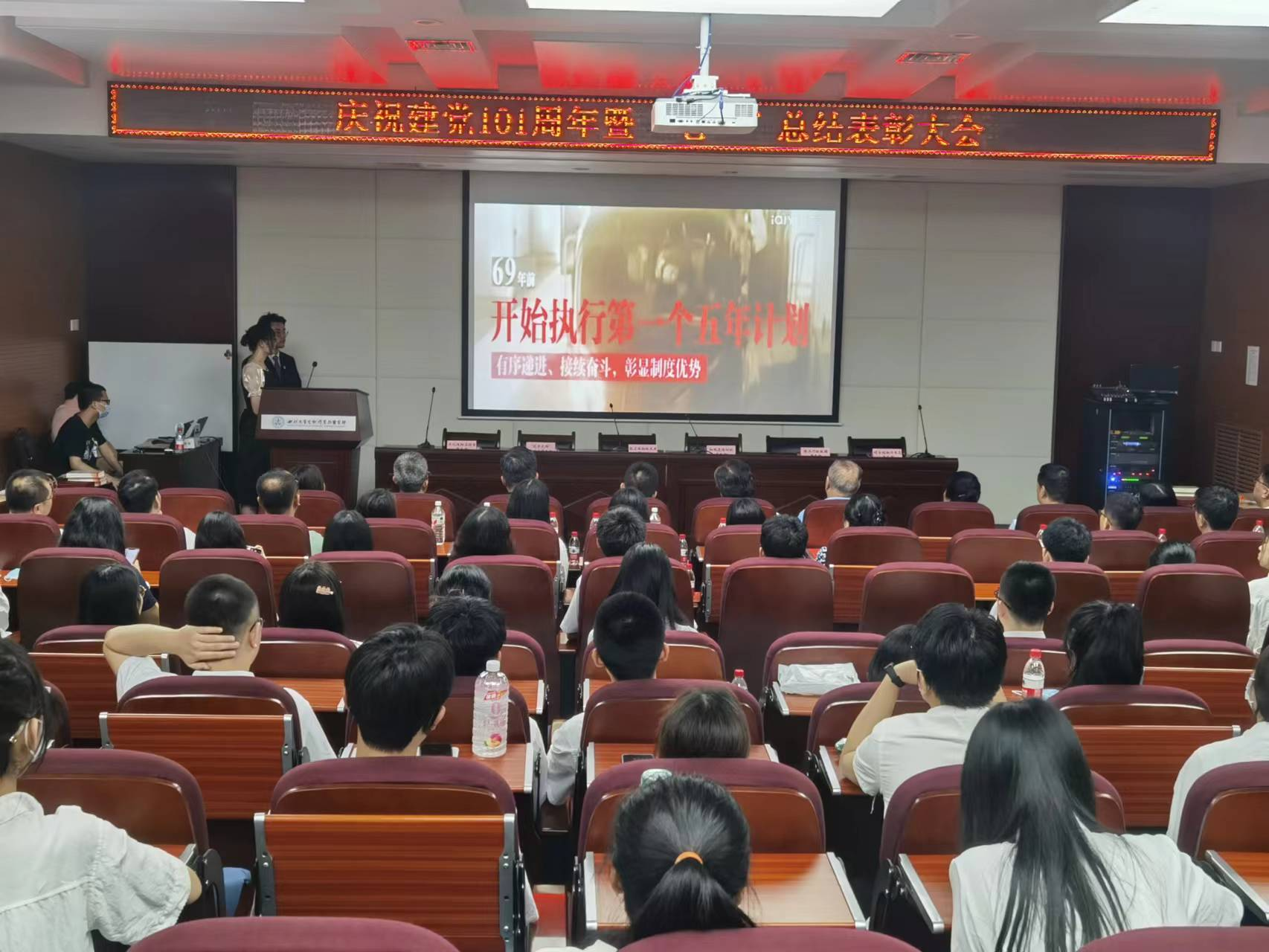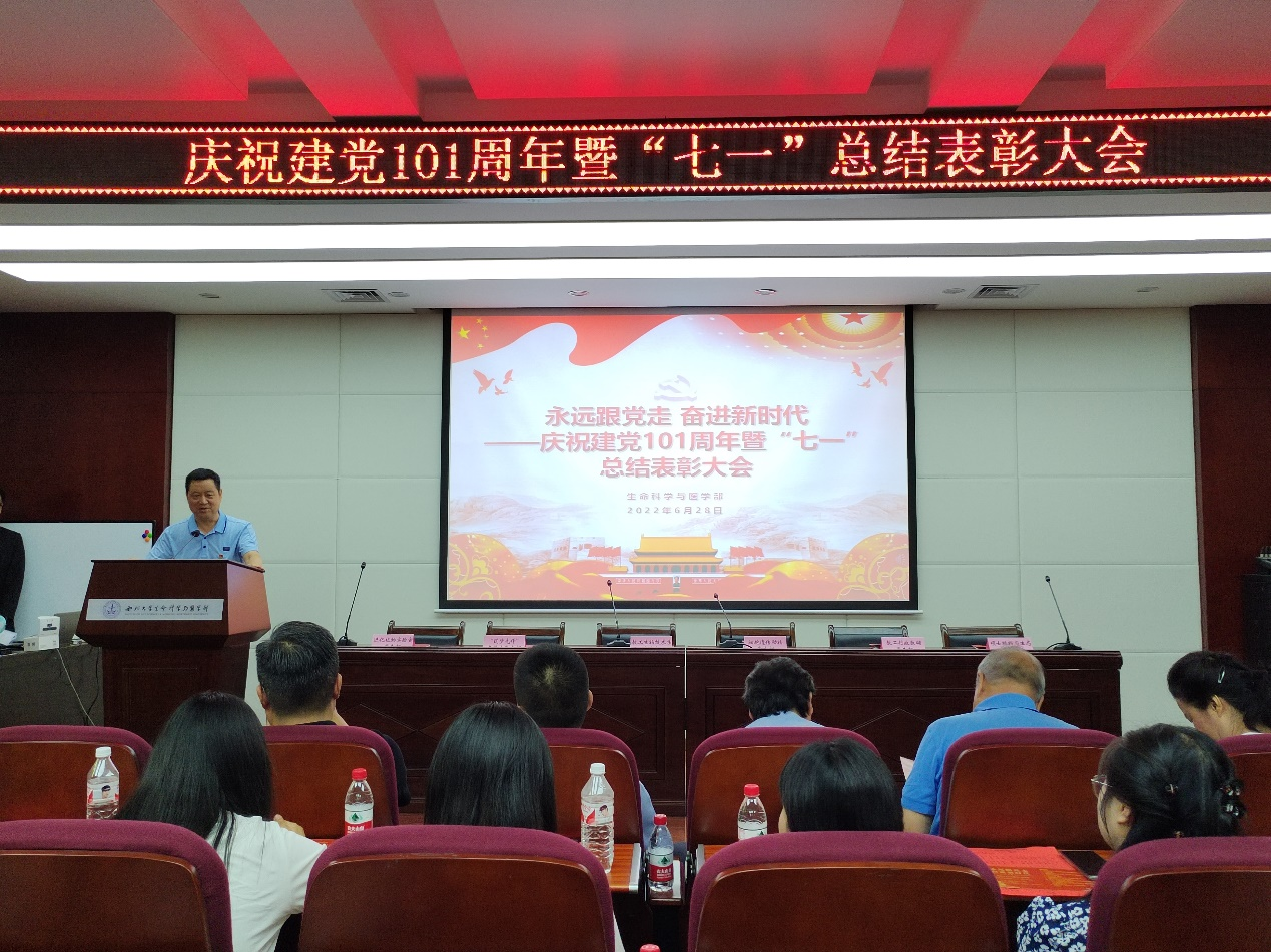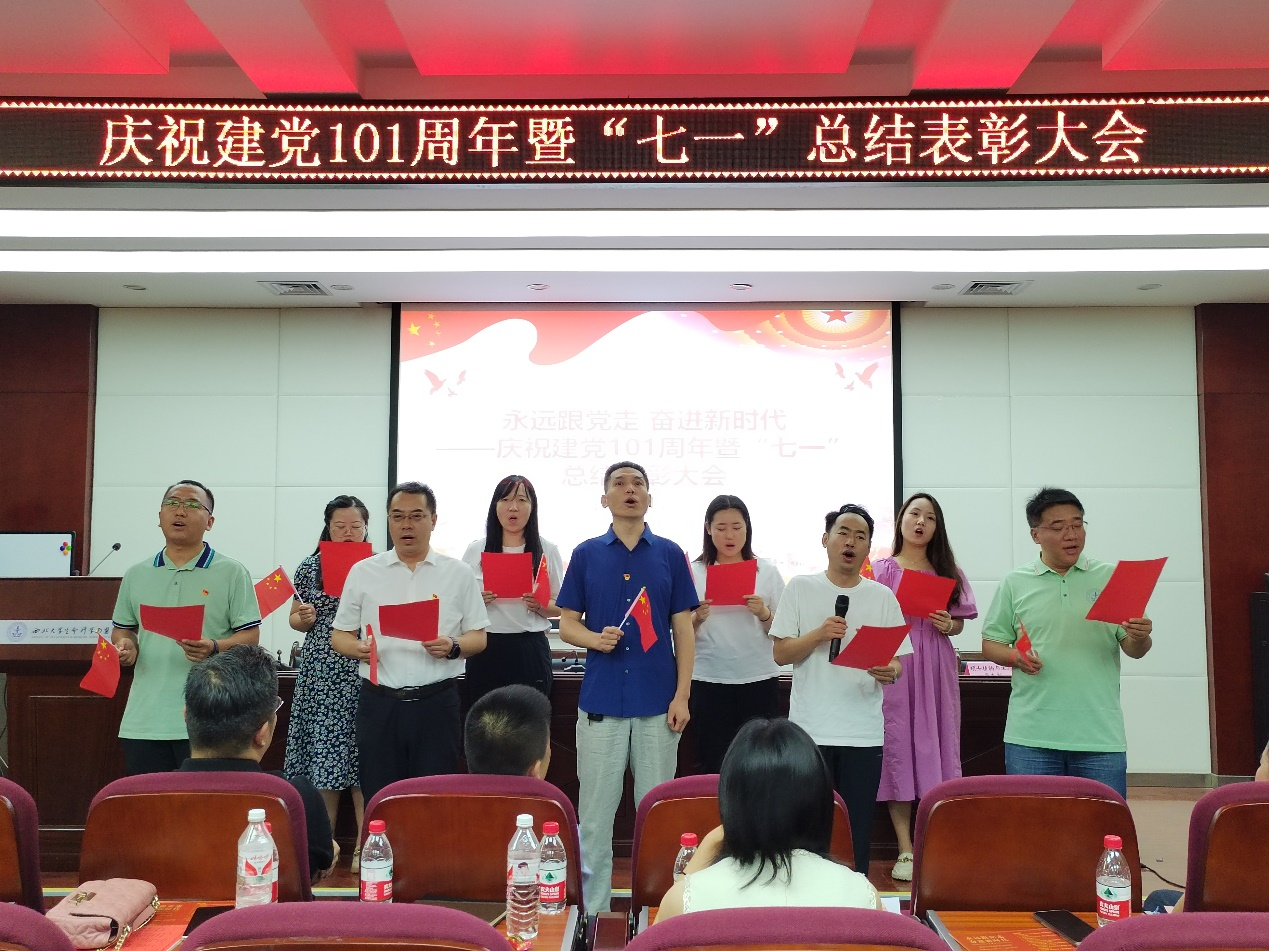 6月28日上午,437437必赢国际网址在博望报告厅举办“永远跟党走 奋进新时代”庆祝建党101周年暨“七一”总结表彰大会,学院党政班子、党委委员、党支部书记、党员代表参加会议。