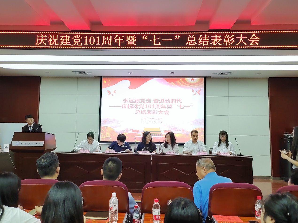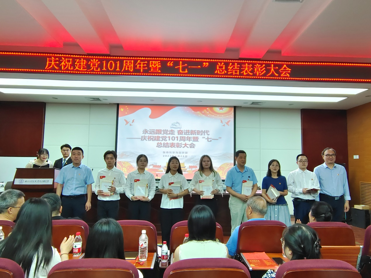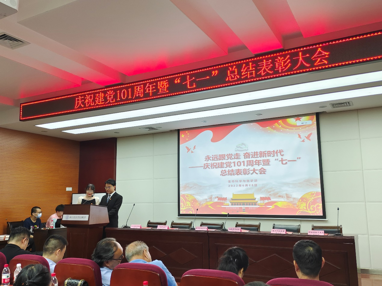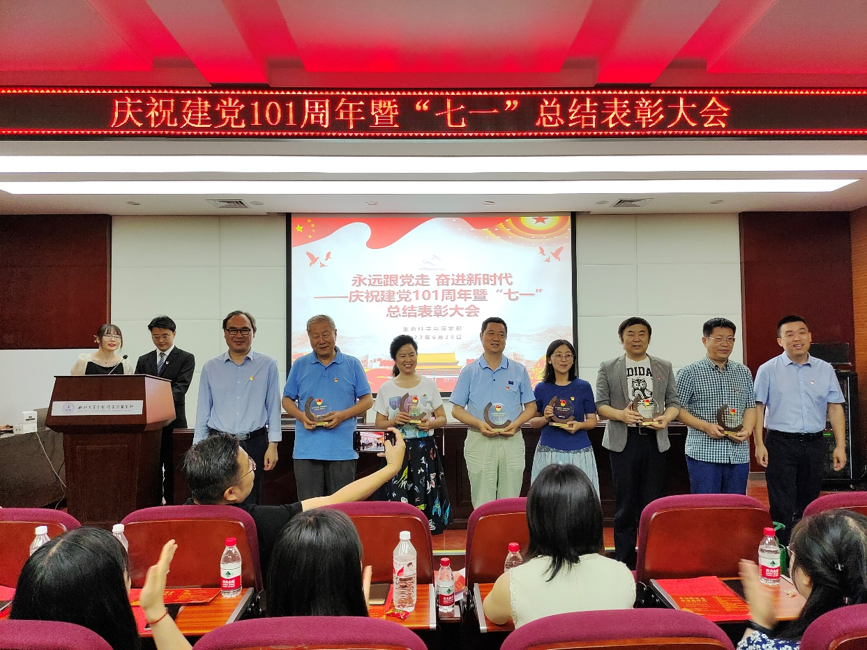 首先,张宇宣读《生命科学院党委关于表彰先进党支部、优秀共产党员、优秀党支部书记、优秀党务工作者的决定》《生命科学学院2022年“党员先锋工程”创建表彰名单》,魏宁宣读《生命科学学院“歌声里的党史”合唱比赛获奖名单》,与会领导为受到表彰的先进集体和个人颁奖,为“党员学导”“启蒙党课”讲师团、“红色基因”党员宣讲团颁发聘书。