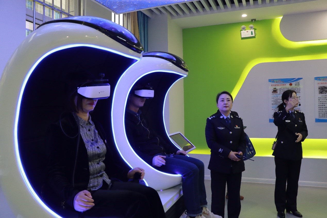 上午,师生前往陕西省女强制隔离戒毒所开展警示教育。在戒毒干警引导下参观戒毒所禁毒教育基地。教育基地分为序厅、毒情形势区、毒品常识区、新型毒品展示区、禁毒英雄故事区等展区,每个展区通过多媒体演示、VR虚拟体验、模具展出等多种方式普及禁毒知识,宣传禁毒法律政策,让师生充分了解了我国禁毒历史、毒品种类与危害、禁毒法规以及如何辨别毒品等相关知识。随后,师生对强制隔离戒毒所管理区戒毒人员生活场所、训练场地、文化活动室等相关场馆的设施进行实地参观。