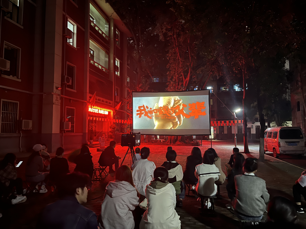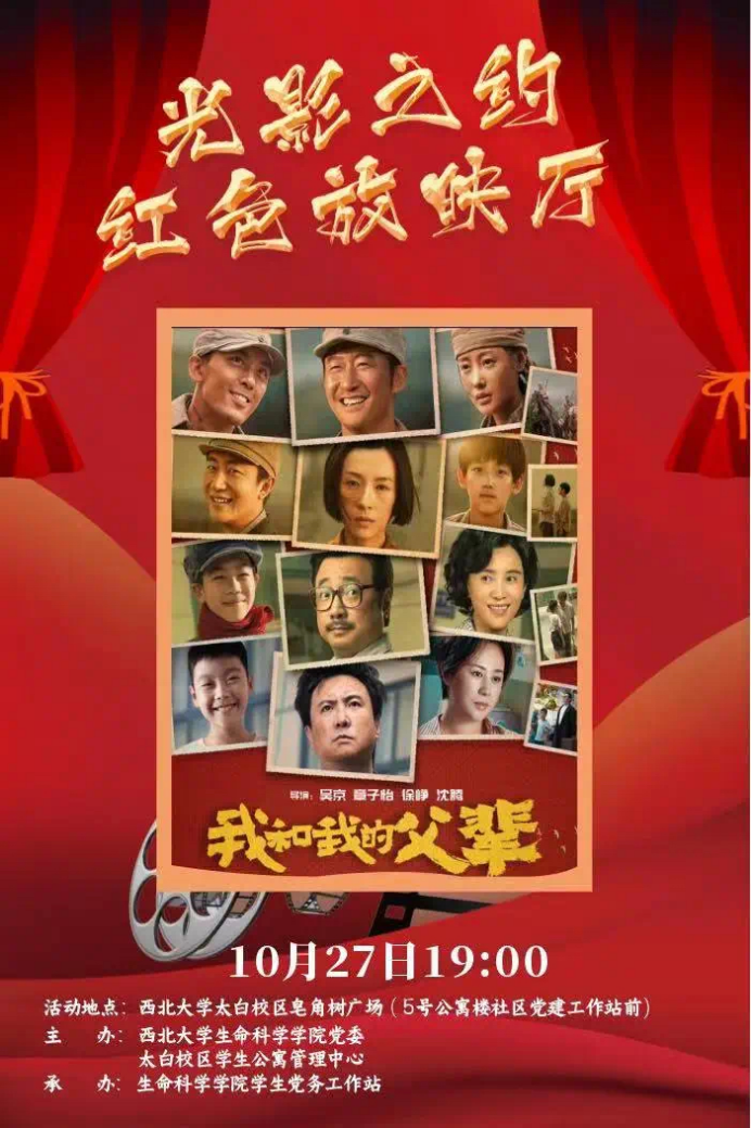 2023年10月27日晚,“光影之约”红色放映厅展播第二场电影《我和我的父辈》,该电影由《乘风》《诗》《鸭先知》《少年行》四个单元组成,分别围绕着“牺牲”、“奉献”、“创新”、“梦想”这四个关键词展开叙事,讲述了在革命、建设、改革开放和信息现代四个不同历史时期中,几代父辈和各时期的代表群体们不忘初心、砥砺前行,传承民族精神的奋斗历程。电影再现了中国革命的宏伟历史卷轴,描写了中国人民为抵抗压迫,追求民族和个人解放,建立美好社会制度而进行的斗争,体现了中华民族的自强不息和艰苦奋斗,展示了一个时代、一个民族对自由和解放的深刻愿望以及为理想社会而奋斗的革命乐观和无畏精神。