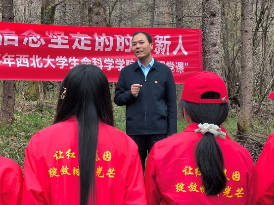 4月14日,学院“筑梦先锋”本科生党支部与陕西省龙草坪林业局委员会小南坪党支部结对共建开展“争当生态卫士 共建美丽中国”主题党日活动,师生共同参观自然学校,见证自然保护区多年来的变化,讲述叙事党课《当青春遇到红色》,共同创作植物画,深刻领会保护秦岭、守护生态的重要性,坚定了厚植生态根基、共筑美丽中国的决心。在巍巍秦岭中,毕业生党员在观音山国家级自然保护区“筑梦”党员初心林进行植树挂牌;校党委副书记吕建荣围绕“传承红色基因,争做时代新人”主题给同学们讲授“林间党课”,引导青年立志做有理想、敢担当、能吃苦、肯奋斗的新时代好青年。