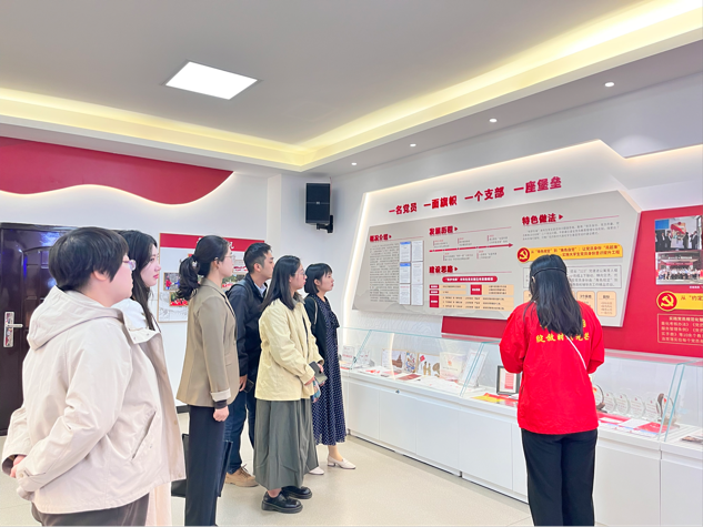 会后, 陕西科技大学数学与数据科学学院学工团队在“红色基因”辅导员工作室师生陪同下参观了党建活动中心、“一站式”学生社区党建工作站、“筑梦先锋”党员服务角等阵地。