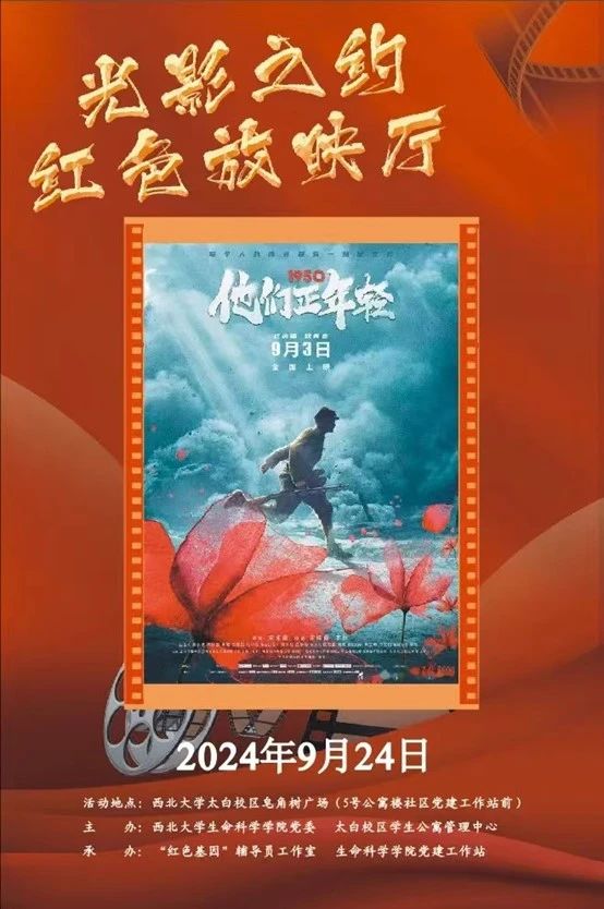 “光影之约”红色放映厅是生命科学学院党委深入学习贯彻习近平新时代中国特色社会主义思想,发挥红色阵地与一站式学生社区育人功能的有益探索。联合校组织部、太白校区公寓管理中心,面向太白校区全体师生定期播放露天红色电影,师生通过观看优秀经典红色电影,进一步增强爱国主义教育、凝聚民族力量、激发奋斗精神、传承文化传统、培养公民意识。营造一个和谐、文明、爱国的校园环境。