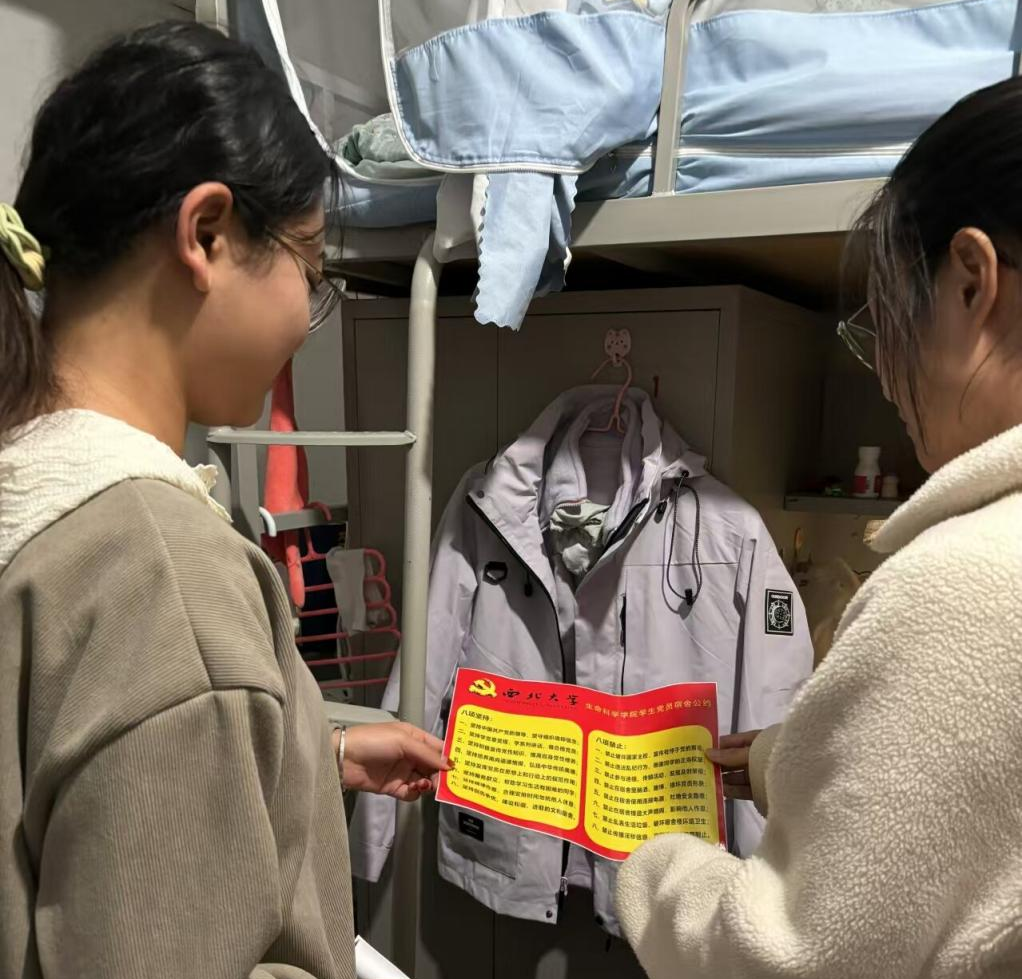为充分发挥党员的先锋模范作用,进一步提升党员意识,10月份,集中为新生党员宿舍、党员床铺挂牌。通过悬挂标识牌,清晰明确了党员的责任和使命,让每一位党员深刻意识到自身在宿舍生活这个小集体中所应承担的职责,时刻以党员标准严格要求自己。同时,也是广大学生们在宿舍这一日常环境中,更加真切、直观地感受到党员的先进性和模范带头作用,在潜移默化的影响下,提升自身的理想信念。