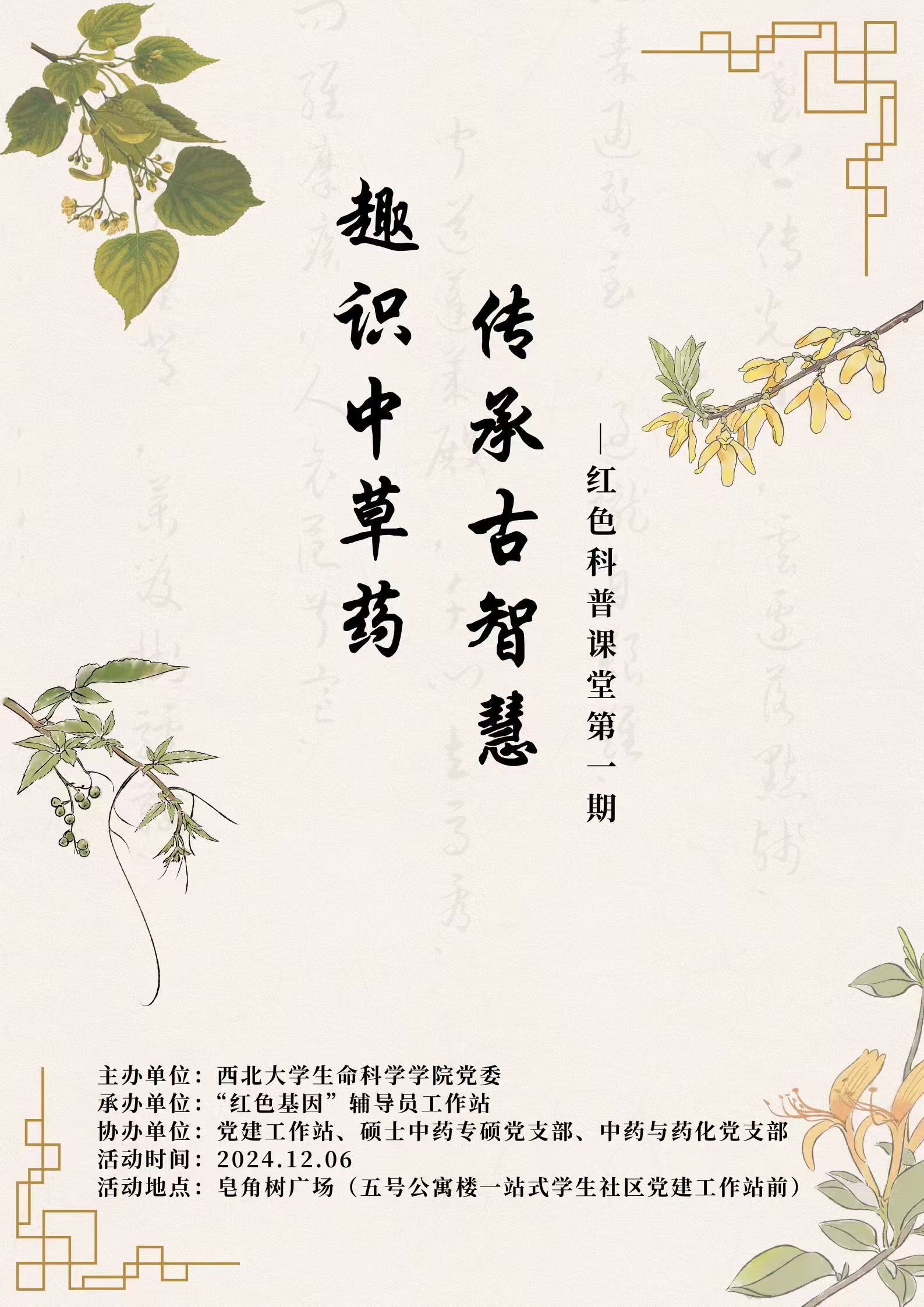 一站式学生社区“红色科普课堂”第一期——“趣识中草药,传承古智慧”中医药知识科普活动预告