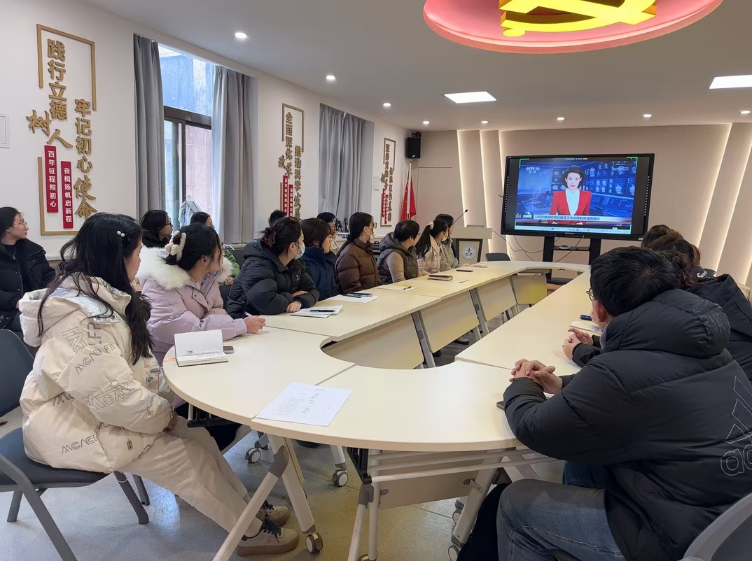 会上,与会人员集中观看《新闻联播》报道《以高质量高校党的建设工作支撑教育强国建设》。学院党委组织员常雅慧领学第二十八次全国高校党的建设工作会议内容,引导师生党员深刻认识高校党建工作的新使命新挑战新要求,牢牢把握教育的政治属性、人民属性、战略属性,以高质量党建引领高等教育高质量发展,回答好“强国建设、高校何为”的时代命题。与会人员立足本职本岗,结合学习工作实际,分享学习体会。与会人员一致表示,要深刻把握高校党建工作的新使命新挑战新要求,始终坚持把党的全面领导贯穿办学治院、教书育人全过程,抓好师生党员理想信念和党性教育,加强校级标杆院系、样板党支部、“双带头人”教师党支部书记工作室的培育创建,把党的政治优势、组织优势和制度优势转化为推动事业发展的根本动力。
