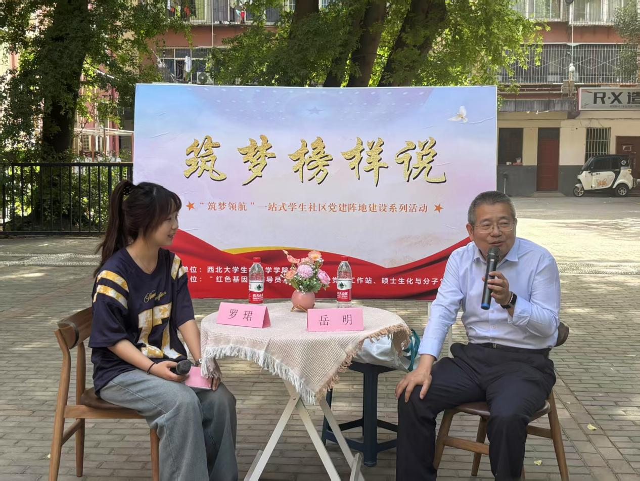 为推进一站式学生社区中党建阵地建设,有效发挥先进党员的先锋模范作用,激励广大青年坚定理想信念,发奋成长成才,4 月 17 日上午,由生命科学学院党委主办,“红色基因”辅导员工作室承办,硕士生化与分子党支部协办的一站式学生社区“筑梦榜样说”第四期活动在西北大学太白校区皂角树广场举行。活动邀请到437437必赢国际网址二级教授、博士生导师岳明老师作为访谈嘉宾,学院 50余名党员代表参加活动。本次活动由学院党委组织员、“筑梦先锋”本科生党支部书记常雅慧主持。