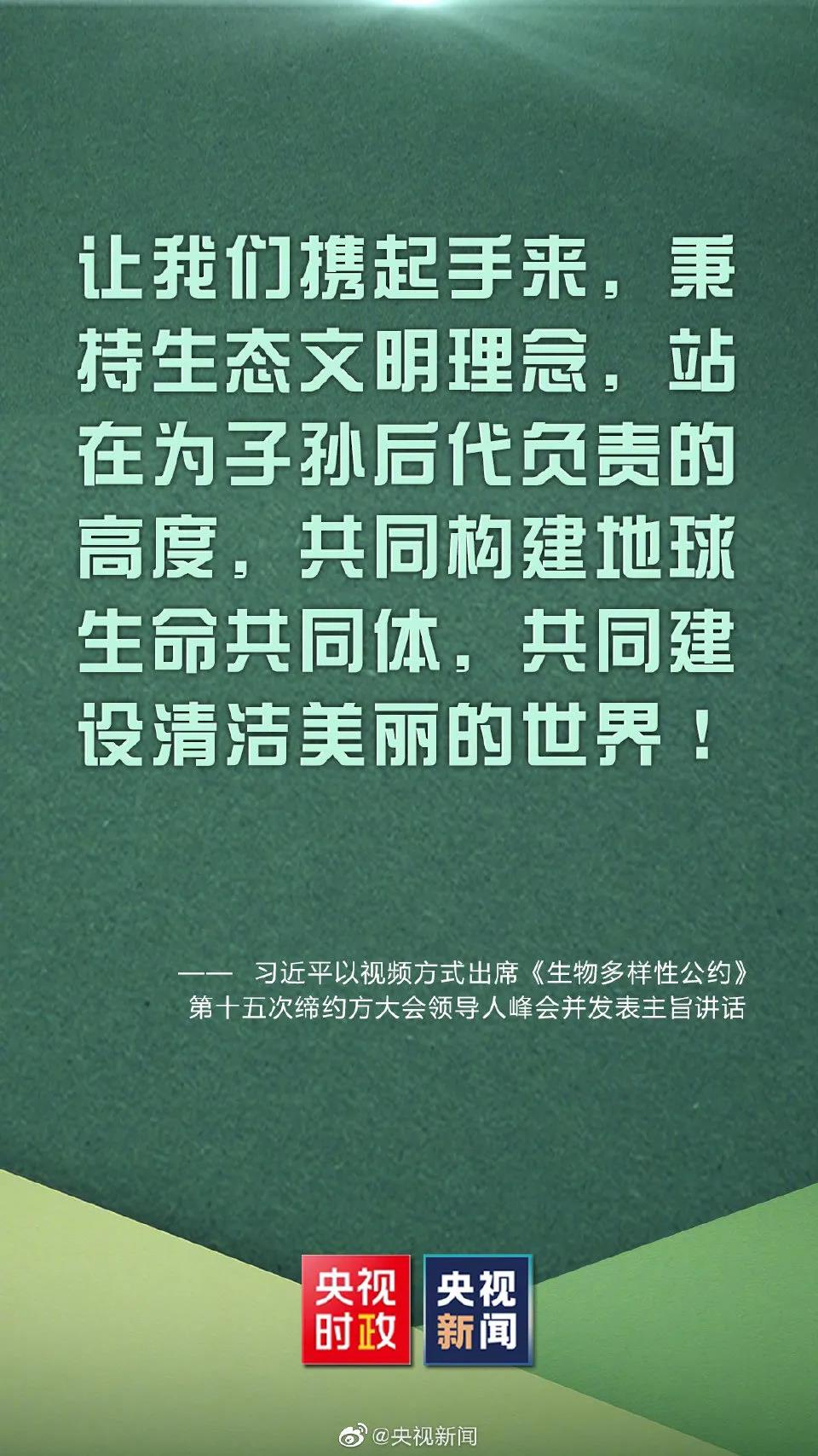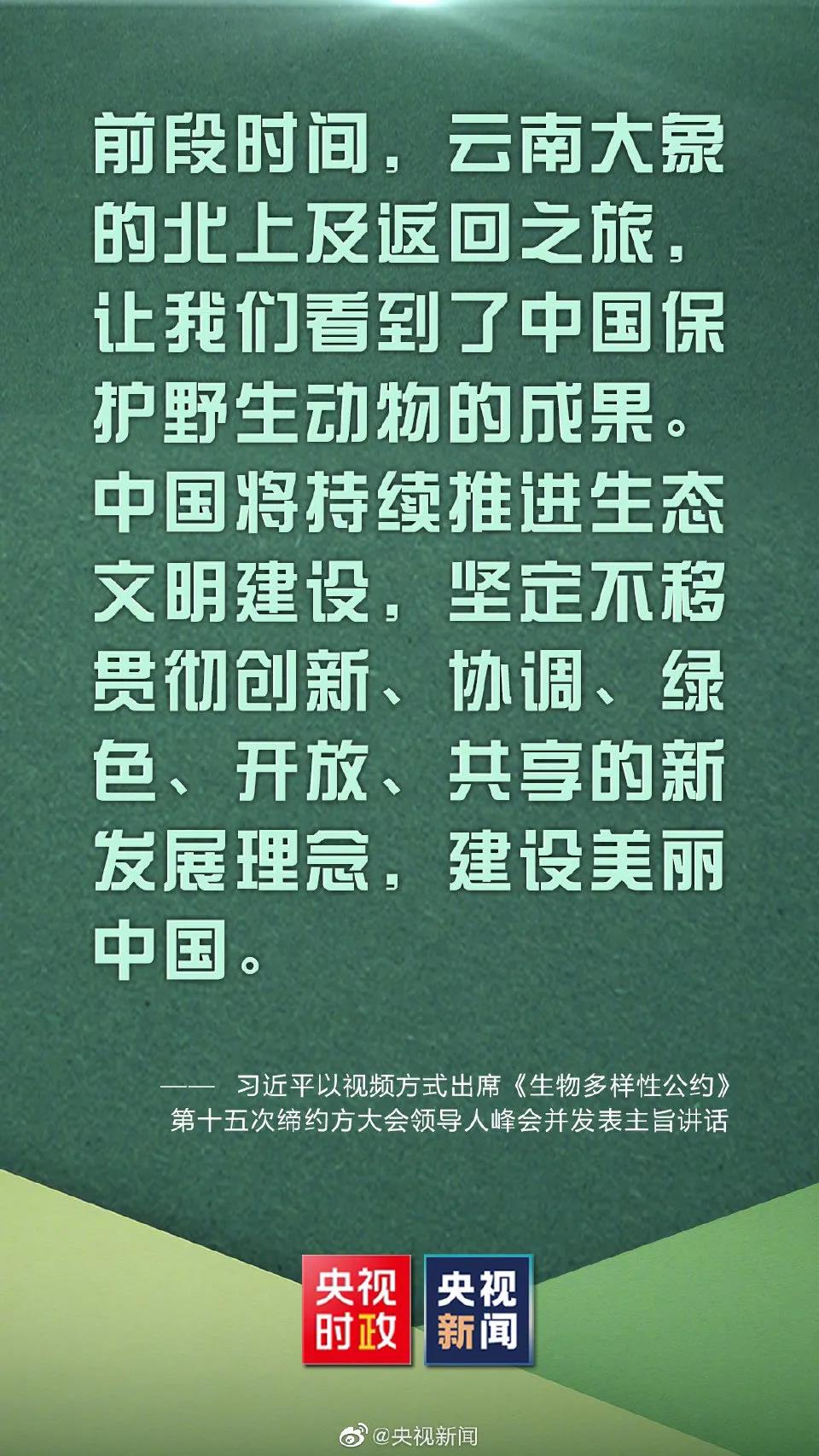 国家主席习近平12日下午以视频方式出席在昆明举行的《生物多样性公约》第十五次缔约方大会领导人峰会并发表主旨讲话。