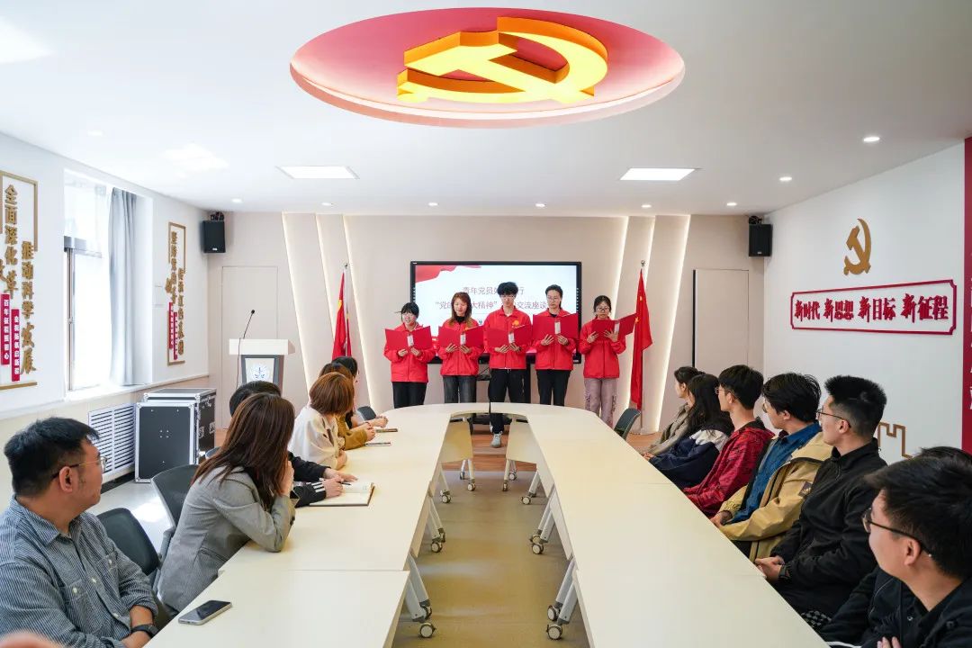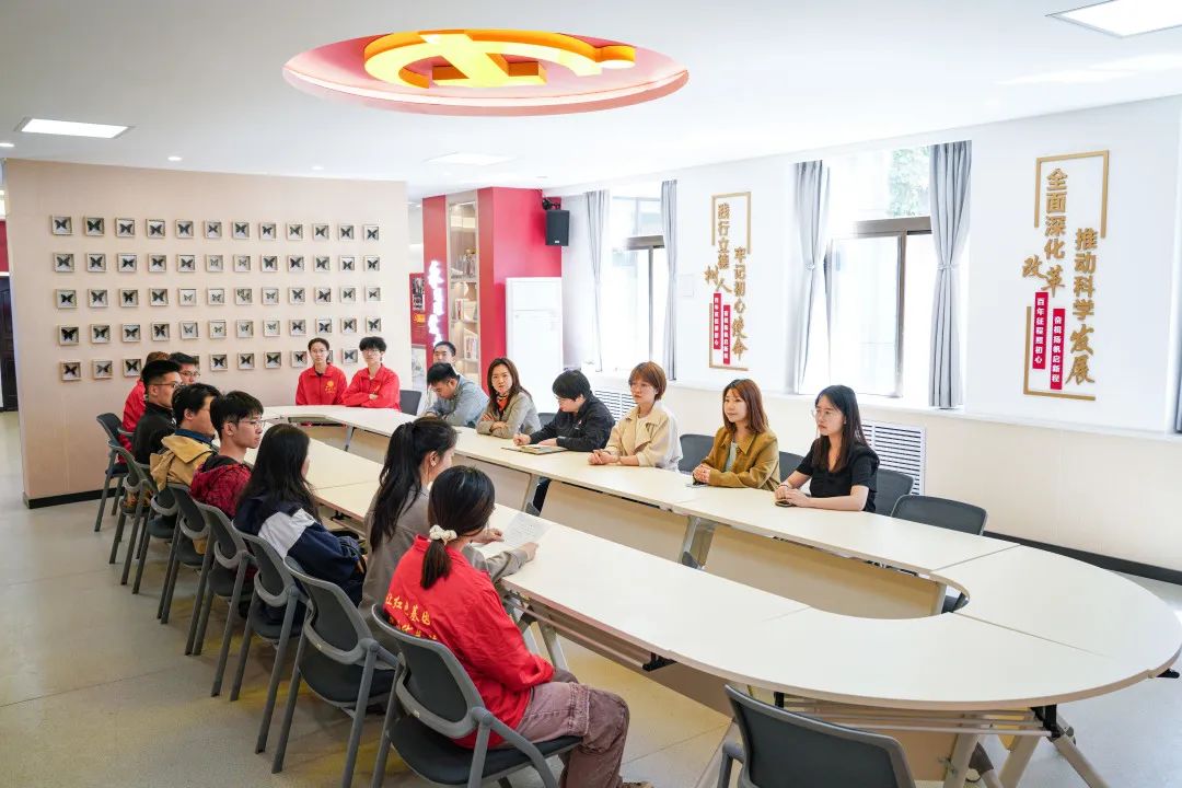 上午,各支部党员来到437437必赢国际网址党建活动中心,在讲解员的带领下参观了“全国党建工作样板支部”—生命科学学院“筑梦先锋”本科生党支部事迹展。随后,在博雅会议室举行交流座谈会,与会党员结合学习心得、学习科研经历等,围绕“青年党员如何践行党的二十大精神”进行了学习交流和解读分享。接着,大家一起欣赏了由“筑梦先锋”本科生党支部同学带来的精彩叙事党课《当青春遇到红色》,讲述了参与“传承红色基因,守护绿水青山”红色实习的所见所感,在实践中深刻体会“绿水青山就是金山银山”的生态理念和“没有共产党就没有新中国”的伟大意义。