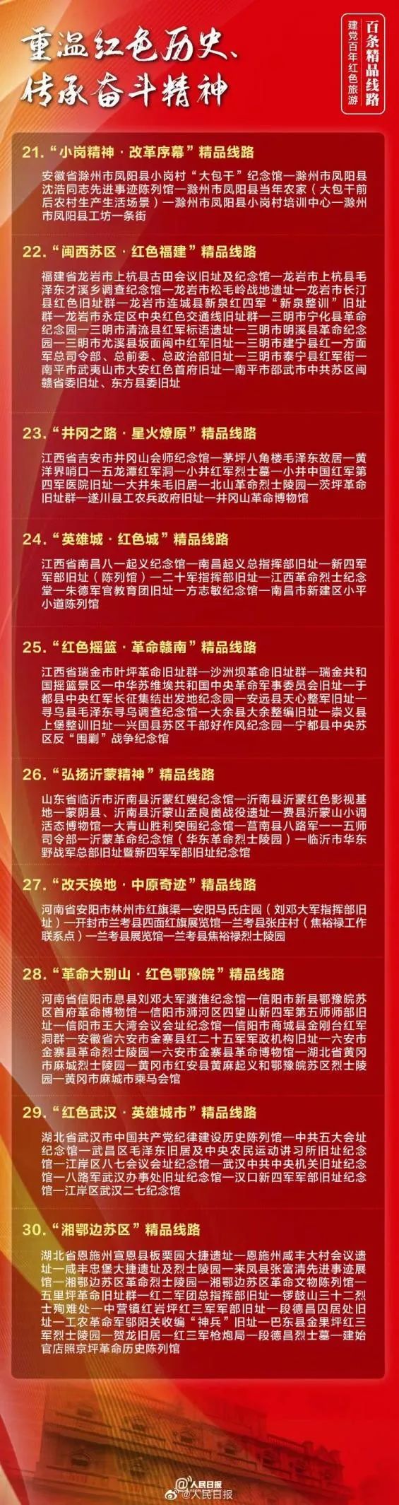 红色旅游百条精品路线
