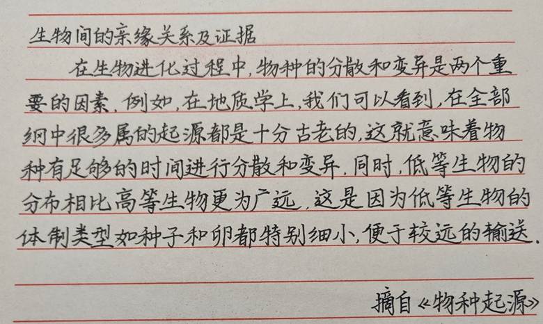 2024级生态学硕士 宁湘俊 《物种起源》经典段落