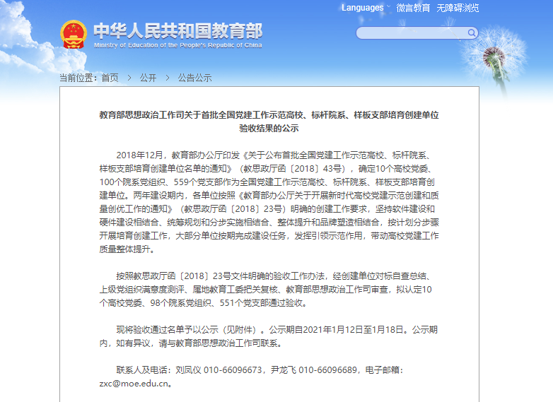 近日,教育部思想政治工作司发布了首批全国党建工作示范高校、标杆院系、样板支部培育创建单位验收结果公示,我院“筑梦先锋”本科生党支部顺利通过首批“全国党建工作样板支部”培育创建单位验收。